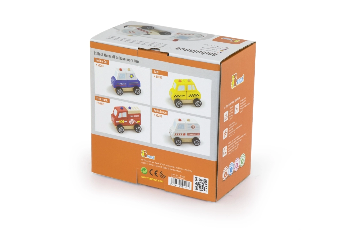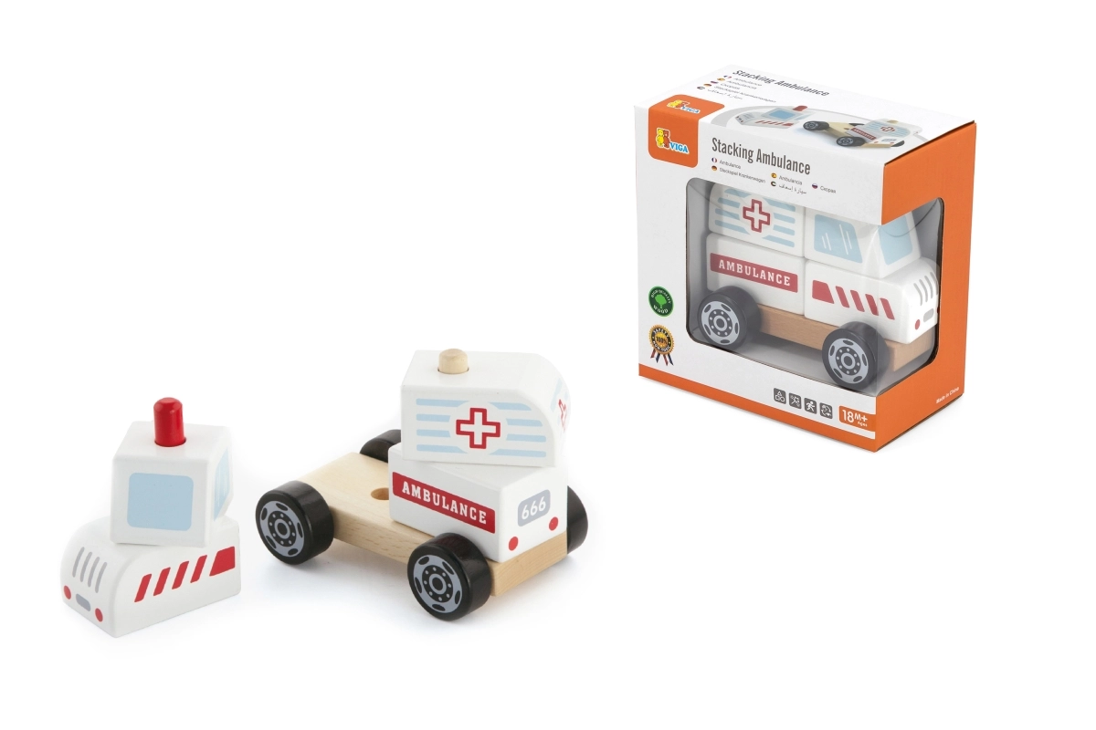 Esta ambulancia de madera combina a la perfección un rompecabezas y un coche con ruedas. Los niños pueden ensamblar las piezas para formar la ambulancia y luego disfrutar del paseo gracias a sus ruedas de giro suave. La madera robusta, las pinturas de calidad y los bordes redondeados garantizan un juego seguro y una larga vida útil.