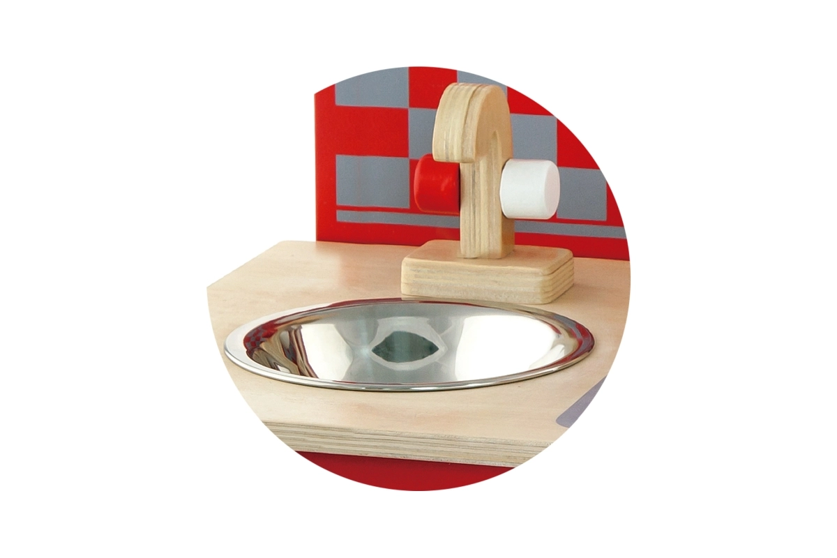Incluye un fregadero compacto con un grifo con estilo, perfecto para jugar a lavar.