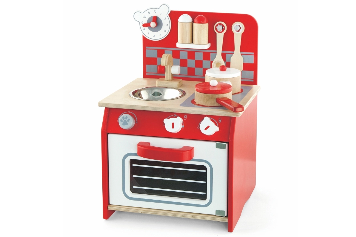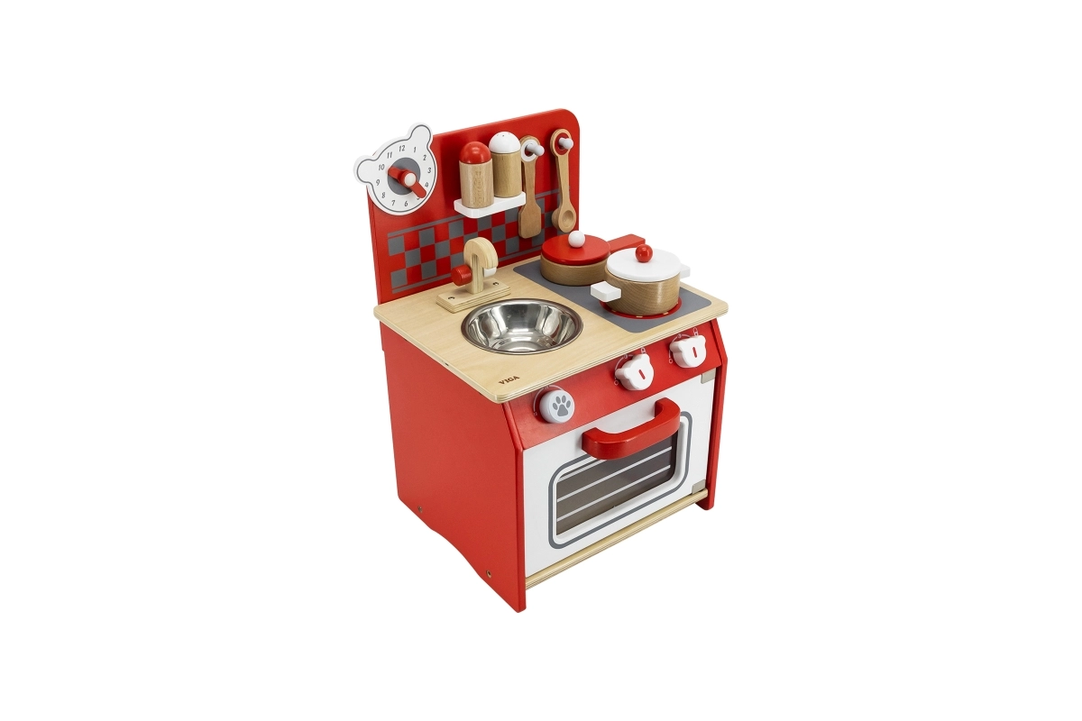 La cocinita de diseño ofrece fogones y horno realistas para un juego de cocina perfecto.