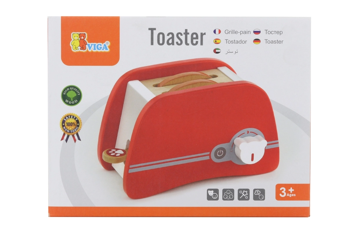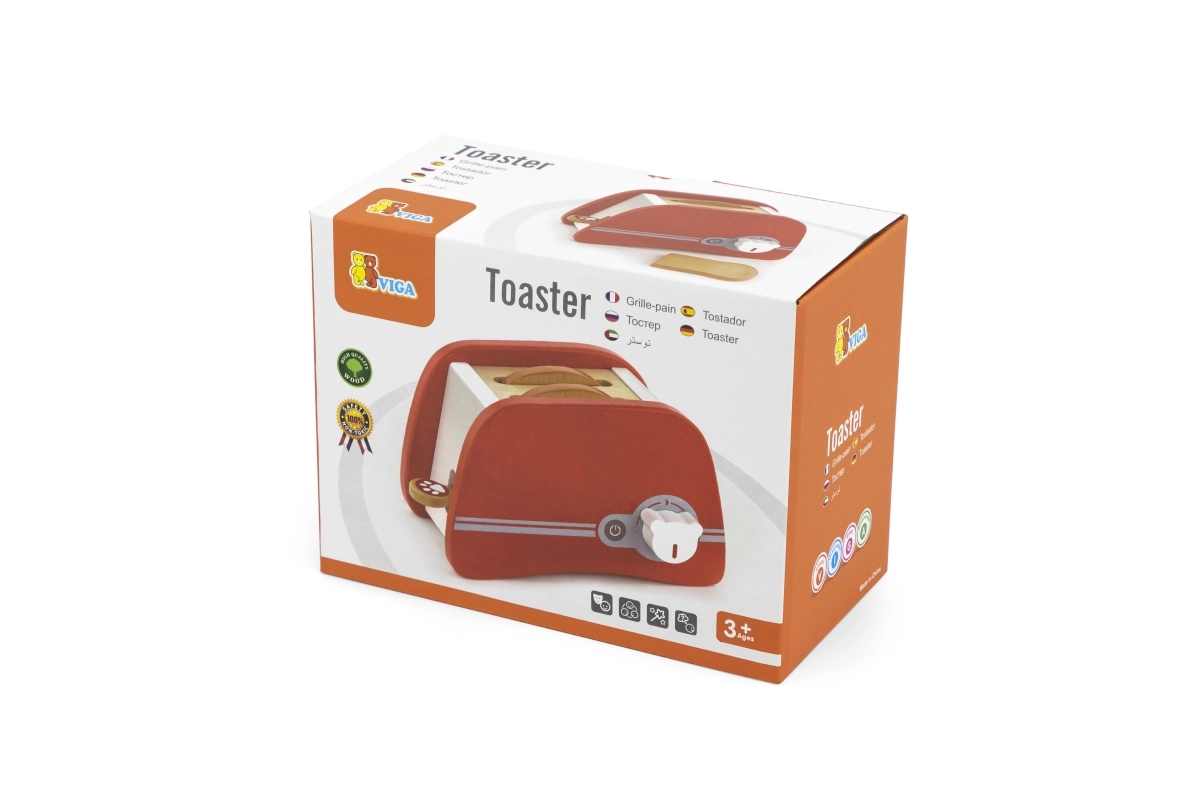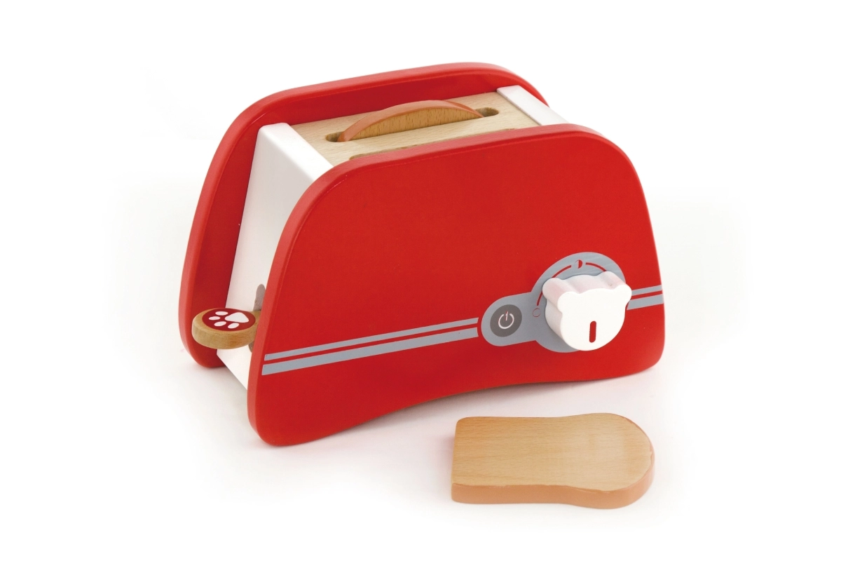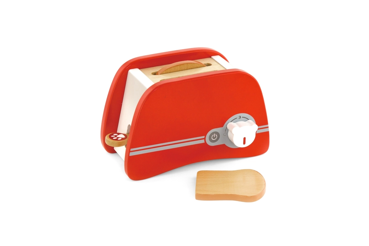 Tostadora de madera resistente y segura, adaptada a las necesidades de los niños.