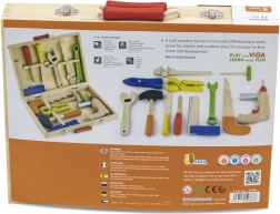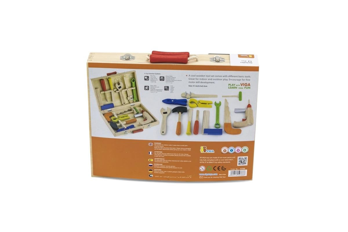 Este juego de herramientas de madera de alta calidad de la marca VIGA ofrece a los niños una experiencia realista de trabajo con herramientas. Piezas coloridas y resistentes, como el taladro, el martillo, el destornillador, la llave o la sierra, fomentan la imaginación y ofrecen una forma segura de desarrollar la destreza y la coordinación mano-ojo.