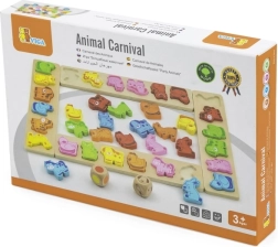 Descubre un mundo creativo con el juego Carnaval de Animalitos: un juego educativo de madera que combina aprendizaje y diversión. Las piezas coloridas y robustas están diseñadas para las manos pequeñas y favorecen la motricidad fina, la concentración y el razonamiento lógico. Gracias a las diversas variantes de juego, los niños nunca se aburren.