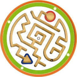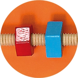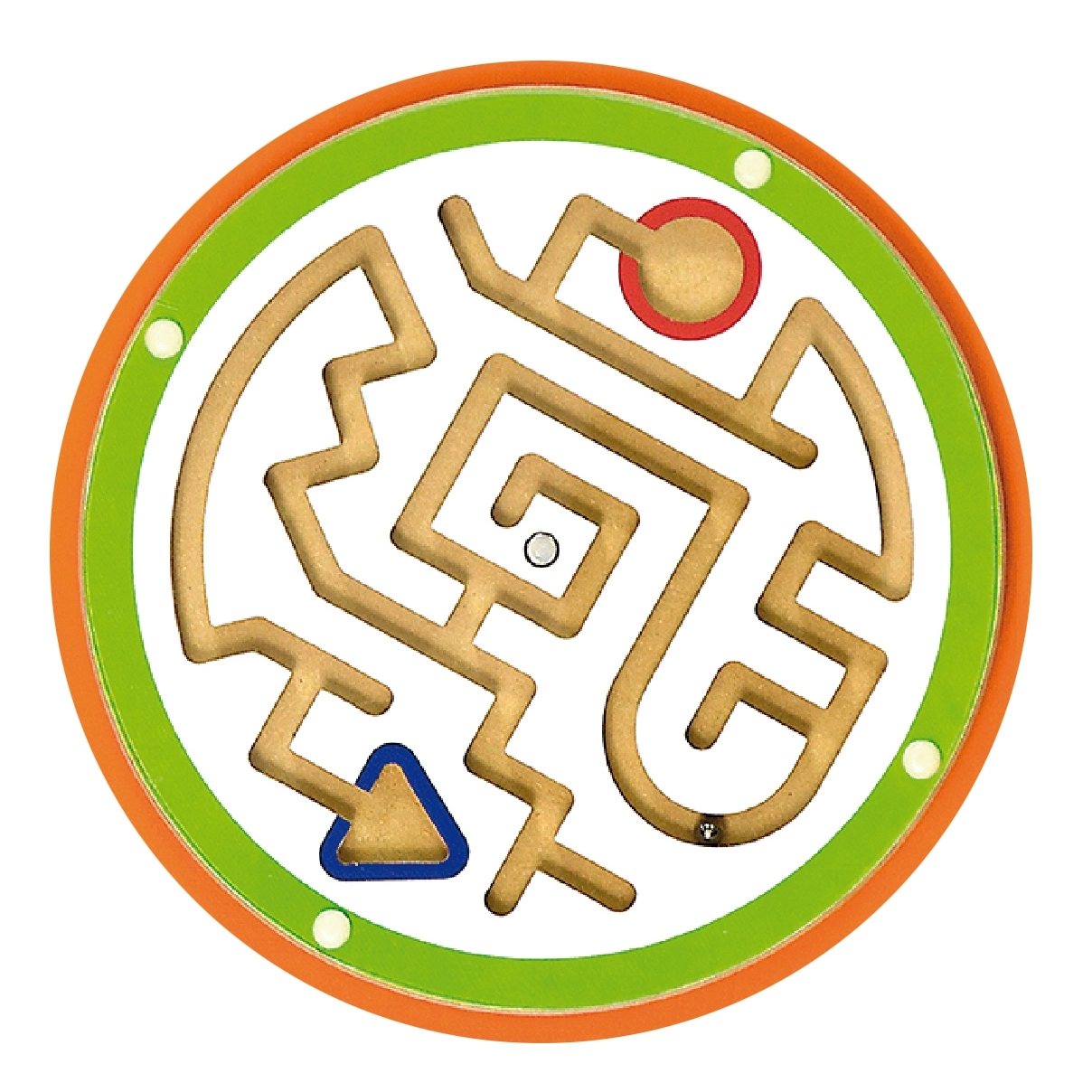 El laberinto con bolita y los tornillos roscados entrenan la precisión de los dedos, el agarre y la coordinación ojo–mano. Los niños mueven la bolita y practican la paciencia y la concentración.