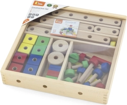 Este juego de construcción de madera de alta calidad ofrece a los niños posibilidades infinitas de creación. Gracias a sus 53 piezas de colores, pasadores, tornillos y conectores, construirán con facilidad modelos sencillos y estructuras imaginativas. Incluye un claro folleto ilustrado que inspira y guía paso a paso los primeros proyectos.