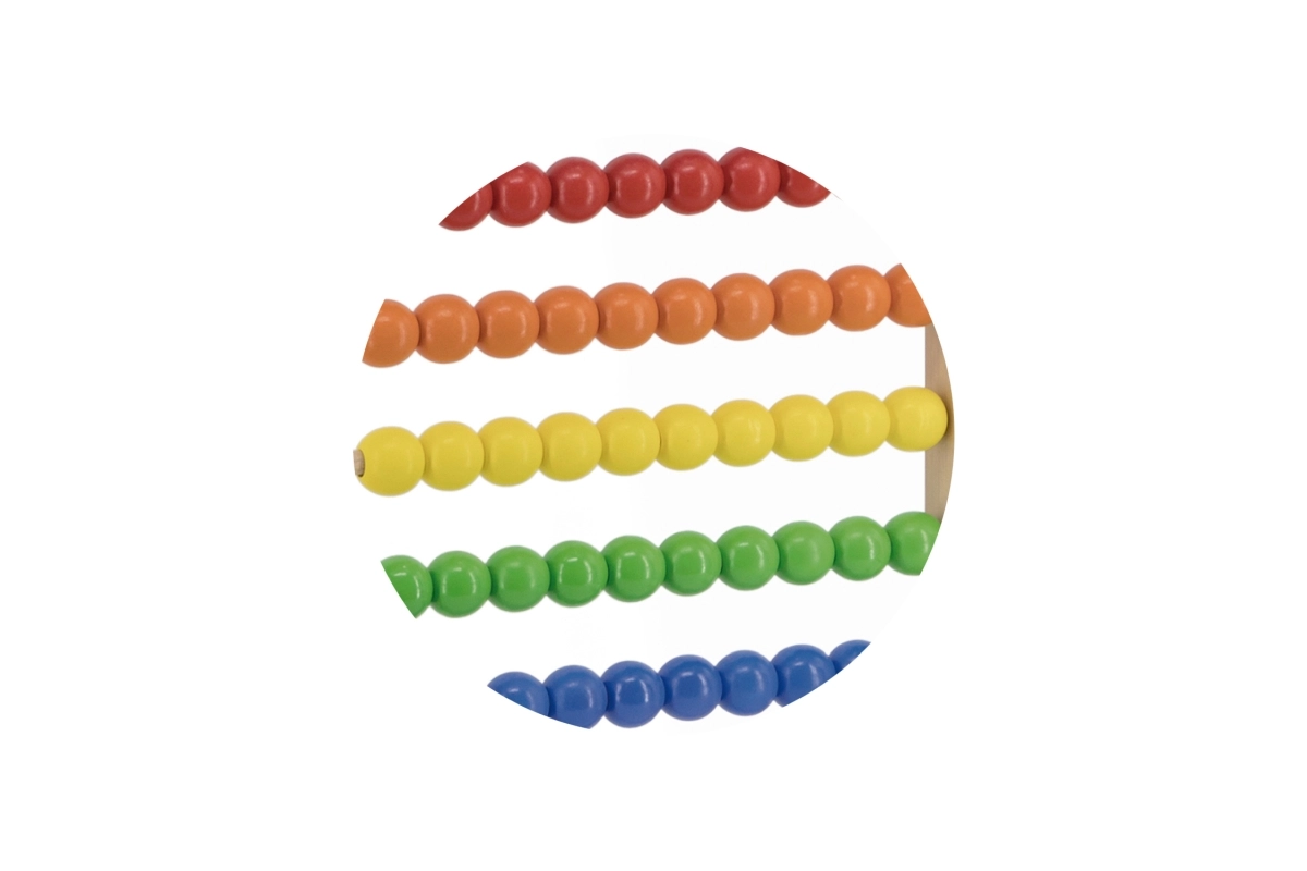 Cada fila contiene cuentas en colores vivos que ayudan a los niños a comprender y contar con mayor facilidad. Este elemento visual también fomenta la creatividad y el desarrollo de la motricidad fina.