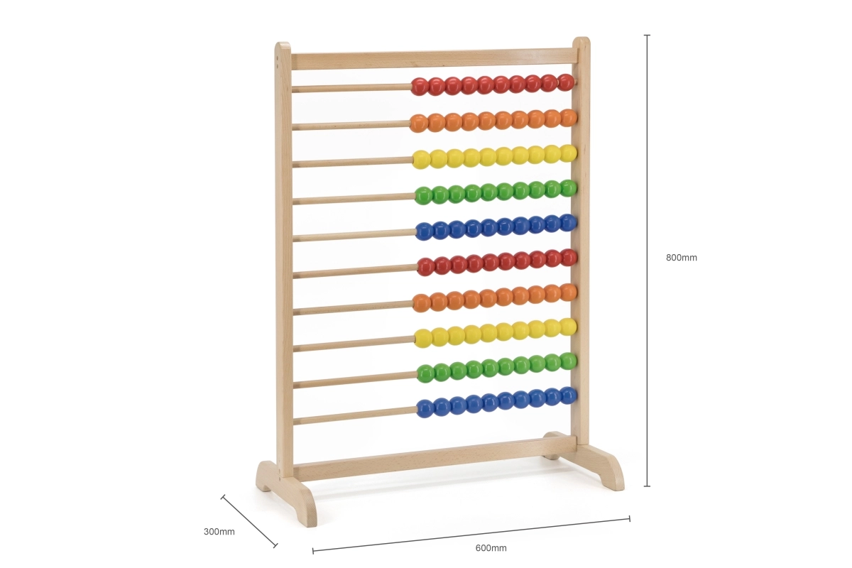 Las dimensiones del ábaco son adecuadas para una manipulación y almacenamiento sencillos. Este ábaco es una herramienta perfecta para el desarrollo de habilidades matemáticas en niños a partir de tres años.