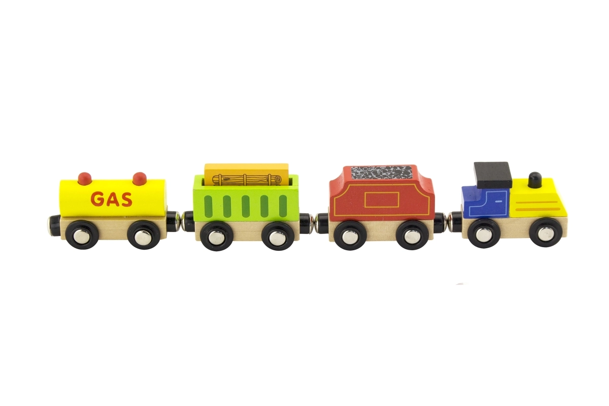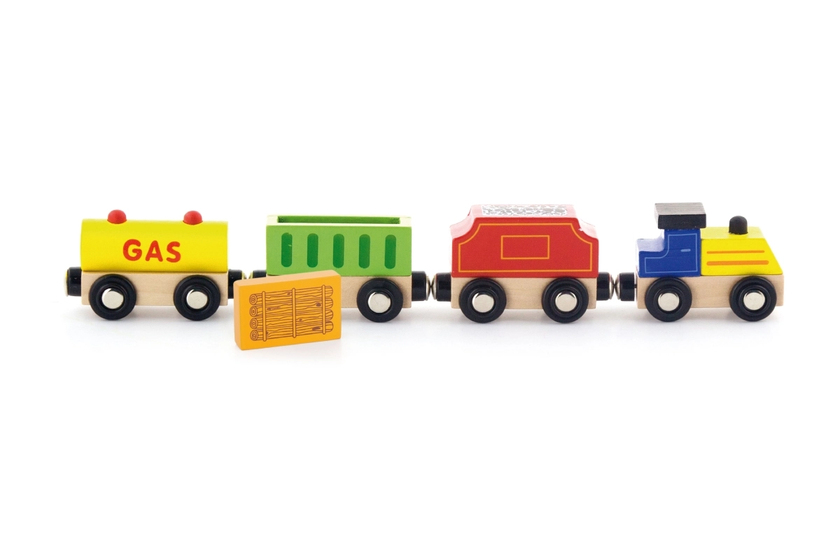 Los coches se unen mediante potentes imanes y son compatibles con la mayoría de vías de tren de madera, por lo que se integran fácilmente en la colección existente.