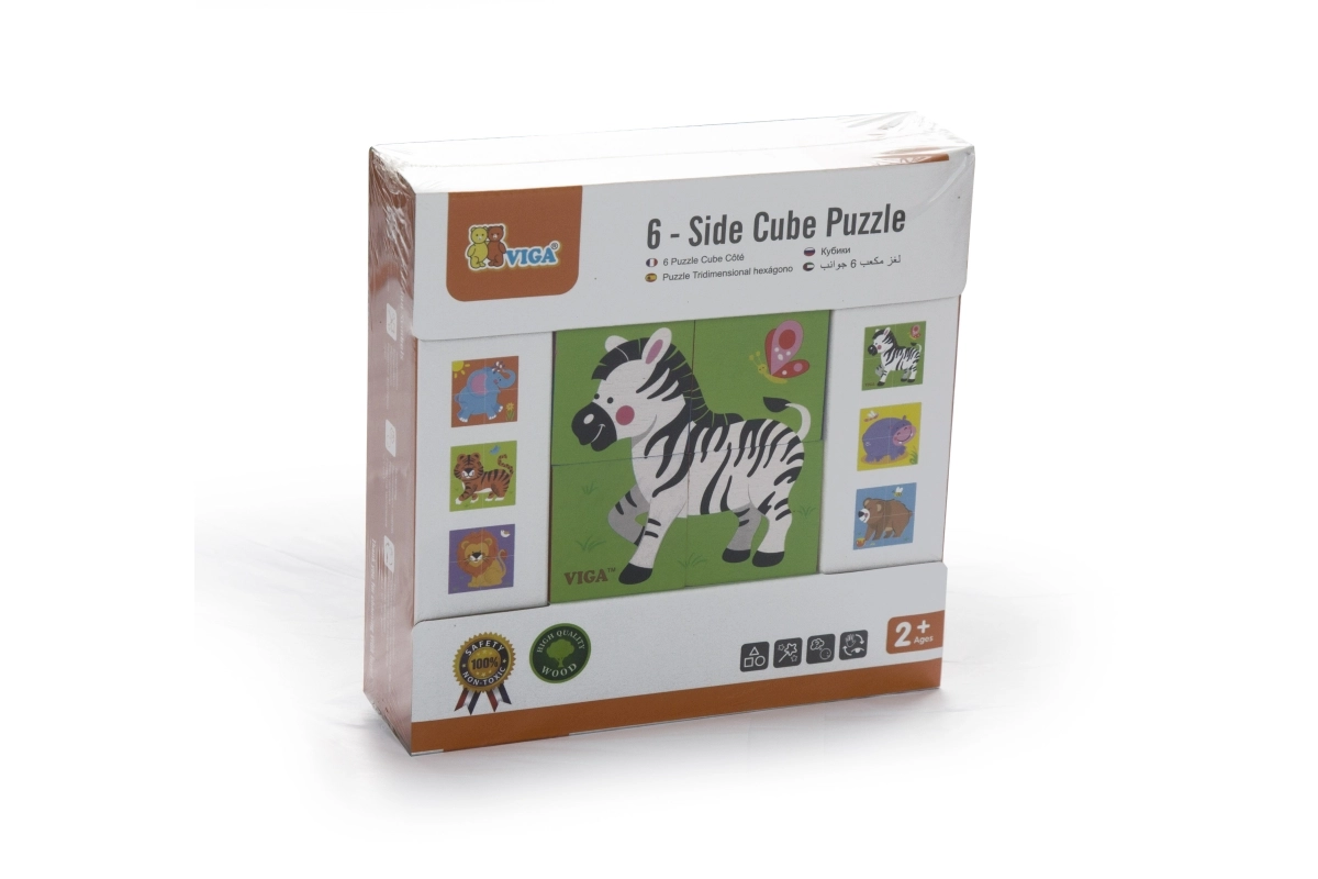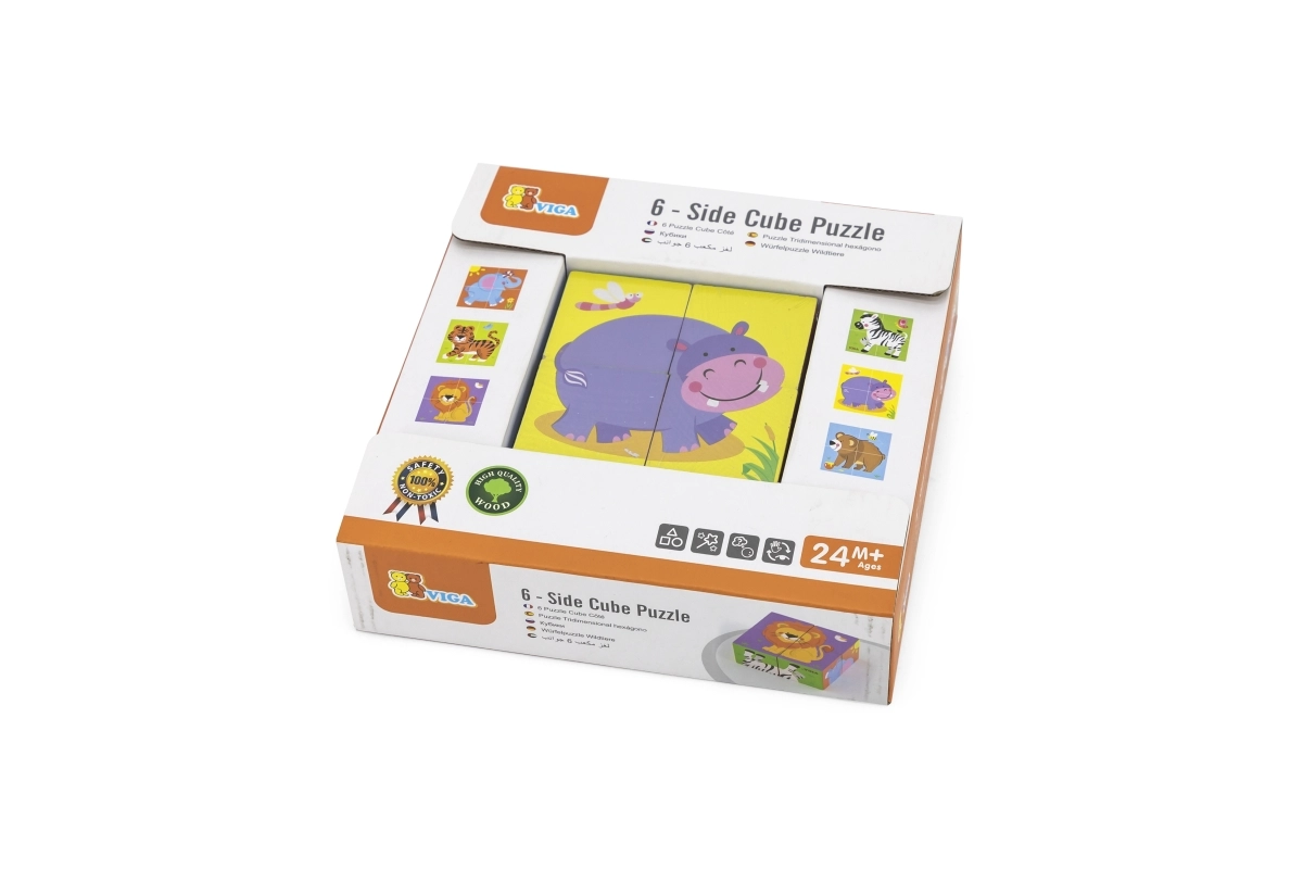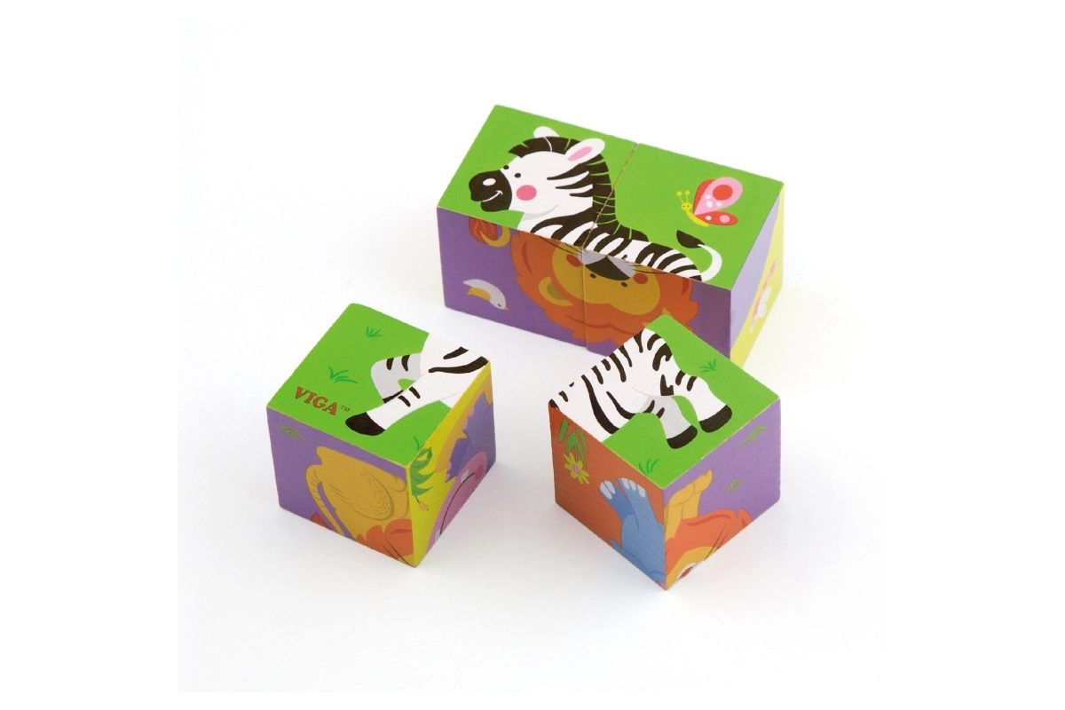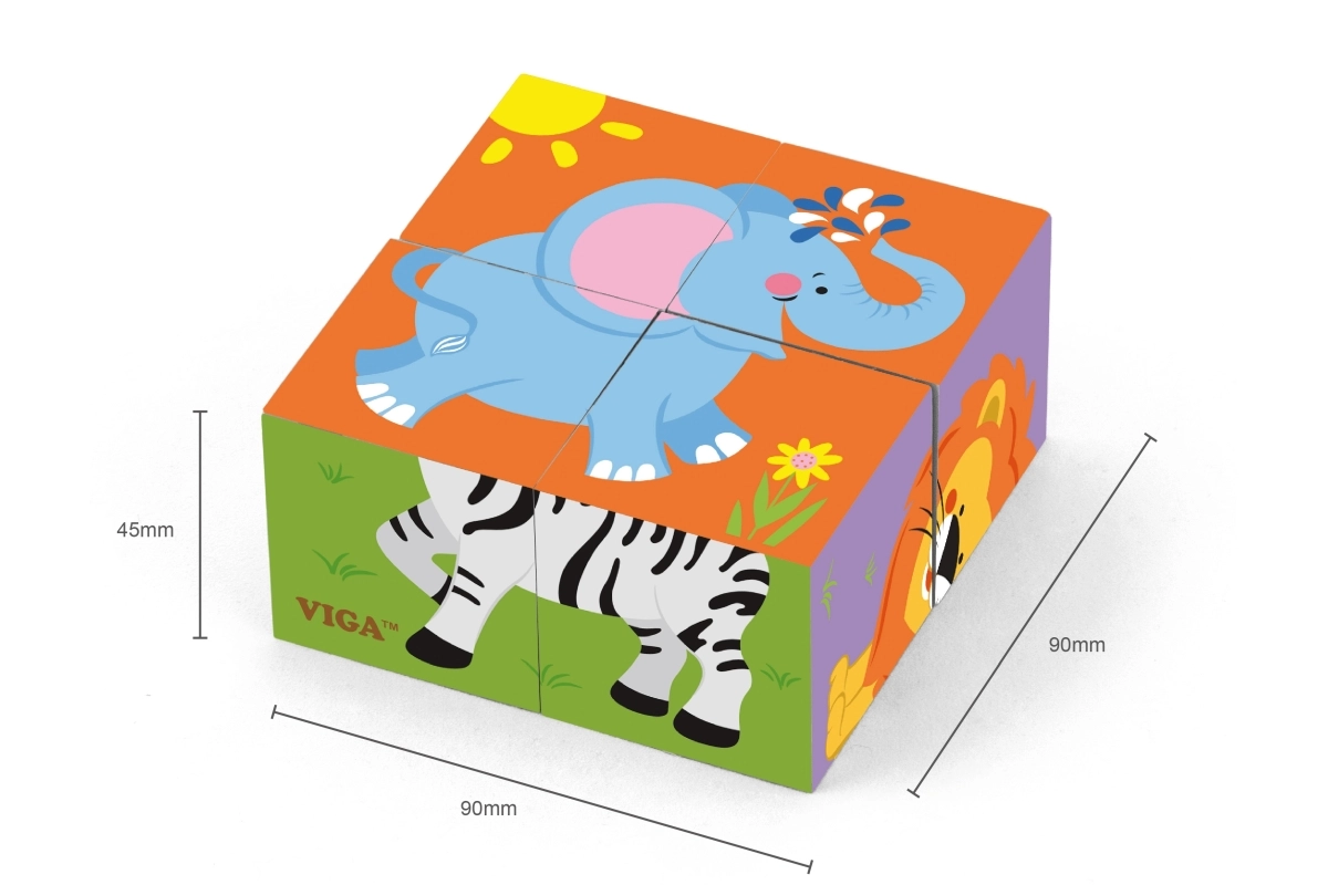 Descubre la magia del primer rompecabezas para los más pequeños: bloques de madera VIGA con motivos de animales del zoo. Con 4 resistentes bloques de madera, los niños pueden formar 6 imágenes diferentes: elefante, león, cebra, tigre, hipopótamo y oso. El juego fomenta la motricidad fina, la coordinación mano-ojo y la creatividad, está hecho con materiales seguros y ecológicos y destaca por sus colores vivos y su alta calidad de fabricación.