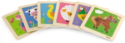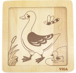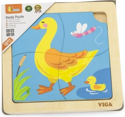 El rompecabezas de madera Viga incluye cuatro piezas temáticas que se montan fácilmente sobre una base con imagen. Cada pieza está fabricada con madera de alta calidad y pintada con colores seguros y no tóxicos, lo que garantiza la seguridad de los niños y del medio ambiente.
