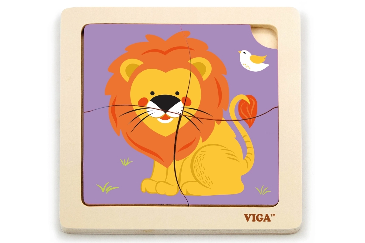 Un adorable rompecabezas de madera con motivo de un león encantará a los más pequeños a partir de los 18 meses. Cuatro piezas grandes y fáciles de agarrar en una base de madera resistente fomentan la motricidad fina, la coordinación ojo–mano y los primeros pasos en el pensamiento lógico. Su tamaño compacto de aprox. 12 × 12 cm es ideal tanto para viajes como para casa.
