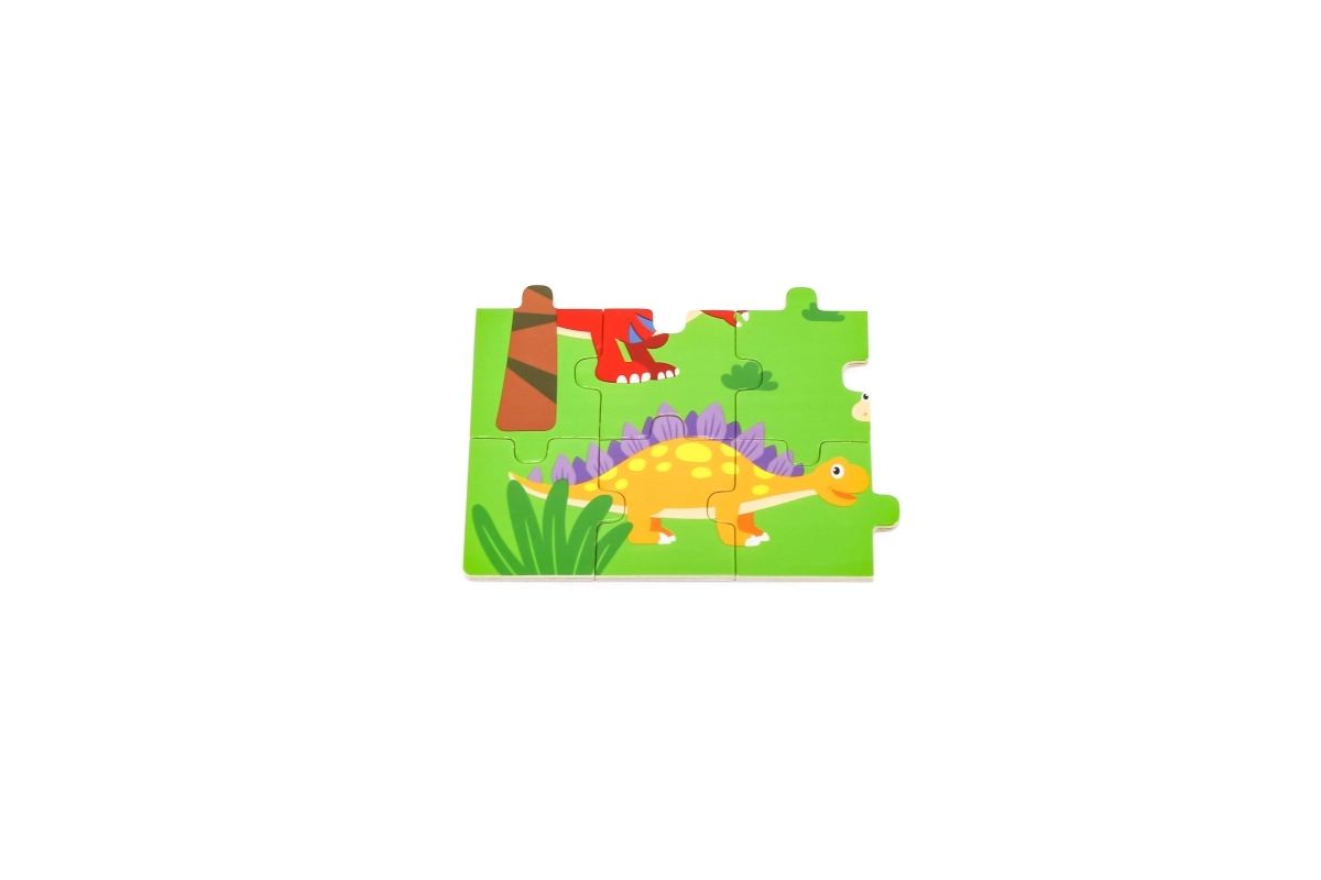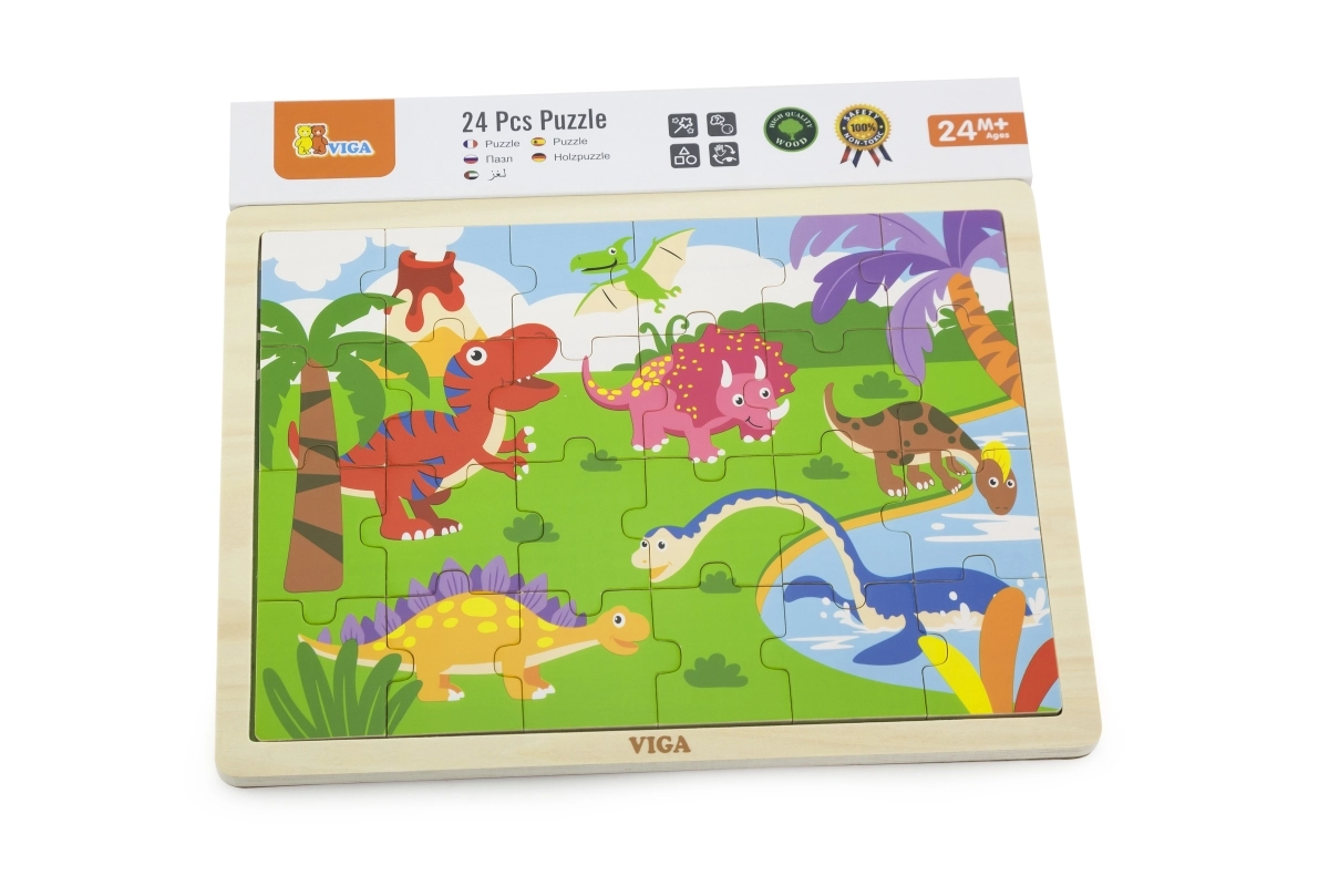 Descubre los divertidos rompecabezas de madera con motivo de dinosaurios, que desarrollan la motricidad fina, la concentración y el pensamiento lógico. El set incluye 24 piezas resistentes y es ideal para niños pequeños a partir de 24 meses. Los puzzles tienen un formato cómodo para armar y están hechos de madera de calidad para una larga durabilidad.