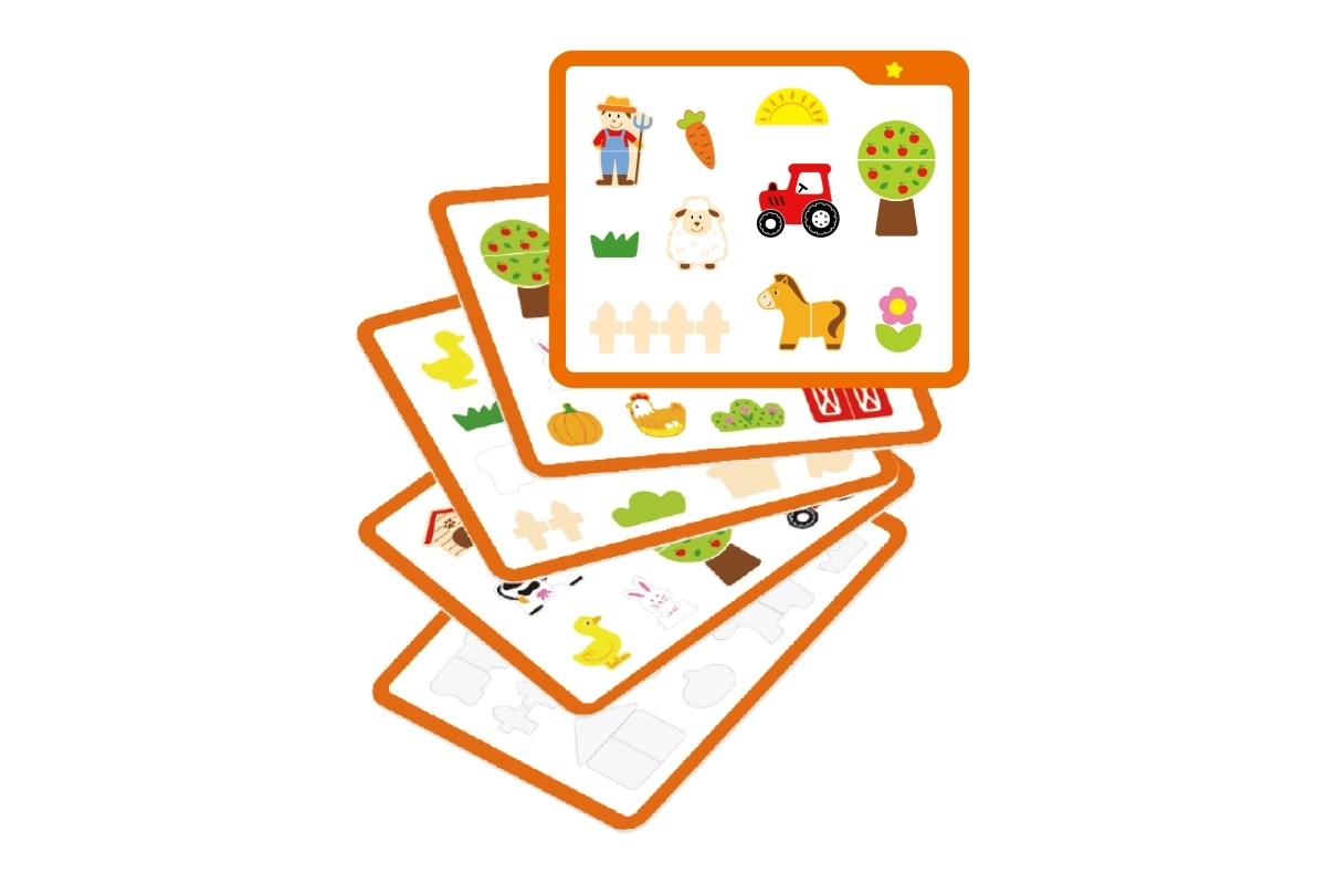 Las piezas tienen bordes redondeados y una fabricación de calidad. También se incluyen plantillas con motivos de granja para empezar fácilmente.
