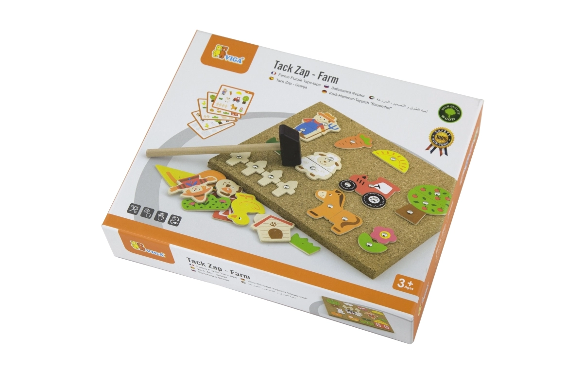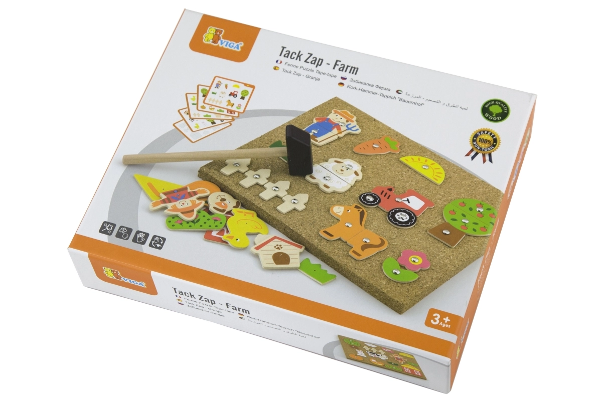La creativa granja de clavado en corcho de la marca Viga desarrolla la motricidad fina, el pensamiento lógico y la creatividad de los niños a partir de 3 años. Gracias a 24 piezas de madera, una base de corcho, un pequeño martillo y chinchetas, los niños crean sus propias escenas de granja según su imaginación o siguiendo plantillas. Los bordes redondeados y la fabricación resistente garantizan mucha diversión y aprendizaje.