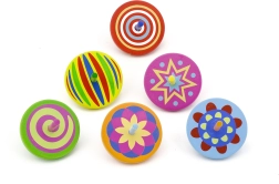 Cada peonza ofrece un conjunto único de colores y patrones que, al girar, generan efectos visuales llamativos.