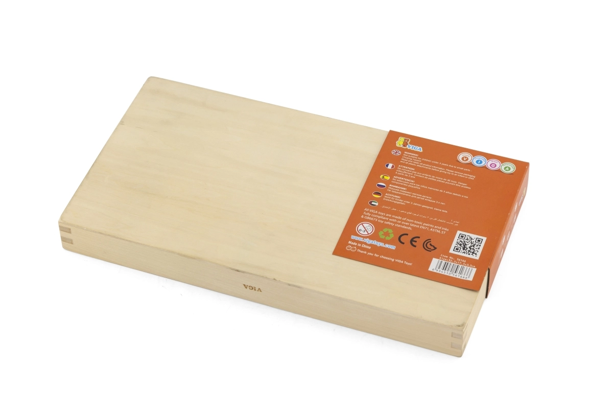 Las regletas son de madera barnizada y están pintadas con colores seguros. La sólida caja de madera con compartimentos mantiene todo en su lugar y facilita el guardado tras el juego.