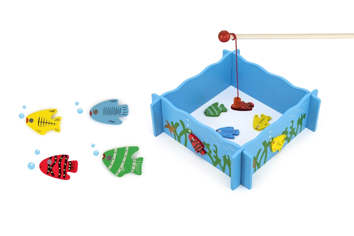 Pescar los pececitos con la caña magnética entrena la precisión, la paciencia y la coordinación. Los pececitos de colores motivan a jugar una y otra vez.
