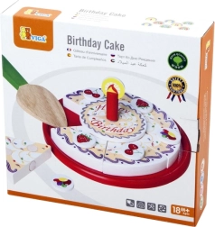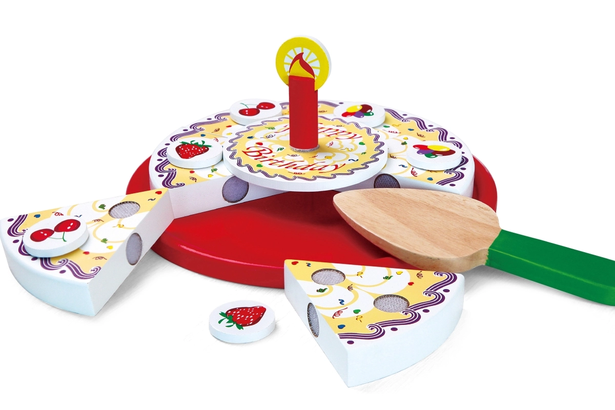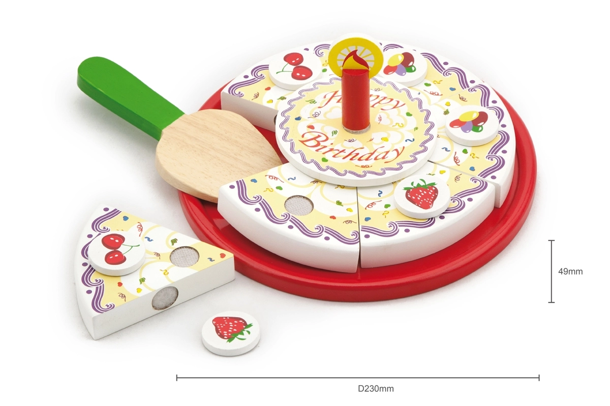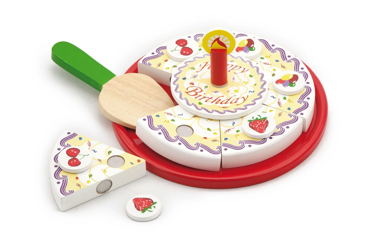 La elegante tarta de madera para cortar de la marca VIGA ofrece a los niños a partir de 18 meses horas de juego imaginativo. Las piezas de colores se “cortan” y vuelven a unir fácilmente, desarrollando la motricidad fina, la coordinación mano‑ojo y la colaboración durante el juego de la fiesta de cumpleaños.