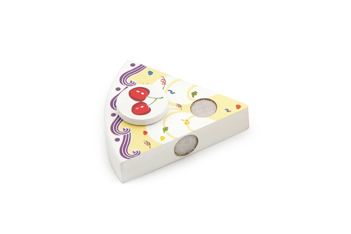 Las porciones del pastel se separan y vuelven a unir de forma realista: los niños entrenan el agarre, la precisión y la coordinación mano‑ojo.