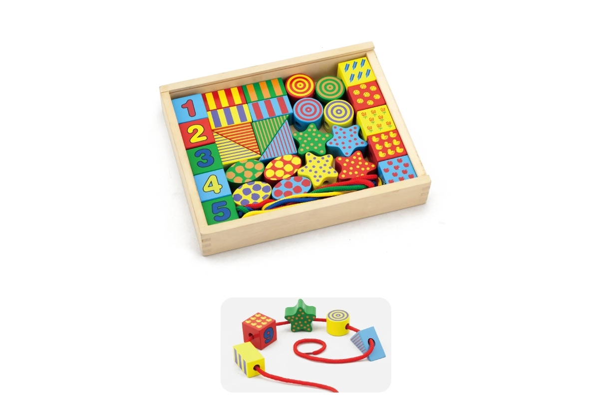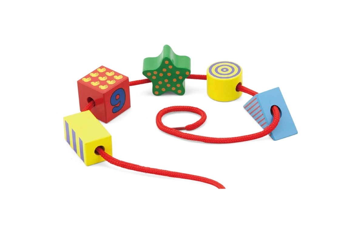 - Fomenta la motricidad fina – ensartar y manipular las piezas.