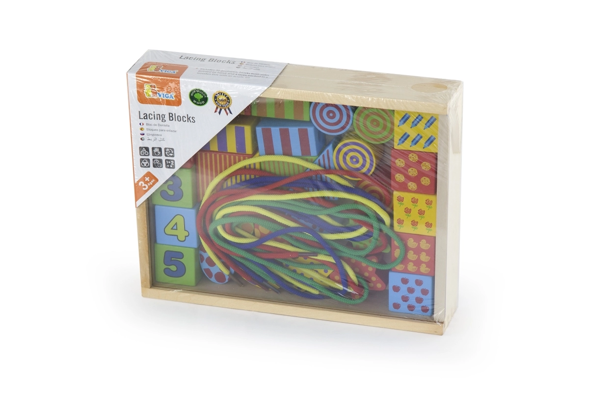 Descubre el juego creativo con el set de ensartar de madera VIGA: una caja llena de formas coloridas para ensartar en cordones como cuentas. Favorece la motricidad fina, la coordinación mano-ojo y el aprendizaje de colores y formas. Piezas de madera de alta calidad con pinturas no tóxicas y tamaño grande para un agarre seguro.
