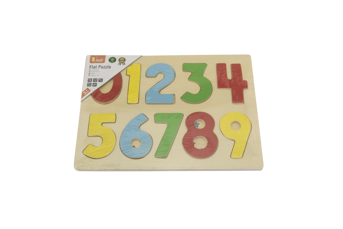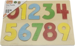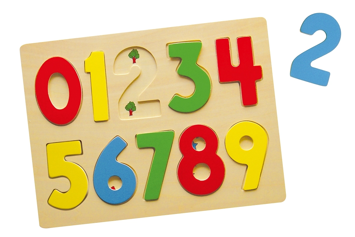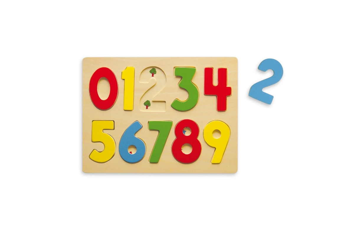Este rompecabezas numérico de madera ofrece diez piezas de colores con los números 0–9 que se insertan en sus huecos correspondientes. Los niños aprenden de forma natural a reconocer las cifras y practican la paciencia y la concentración.