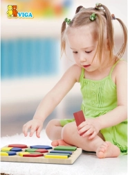 Este encajable educativo de madera VIGA es el juguete ideal para las primeras exploraciones del mundo de las formas y los colores. La base de madera robusta con recortes precisos y 18 piezas de colores enseña a los niños a clasificar, mejora la coordinación mano-ojo y desarrolla la imaginación espacial.