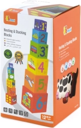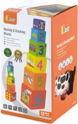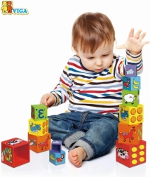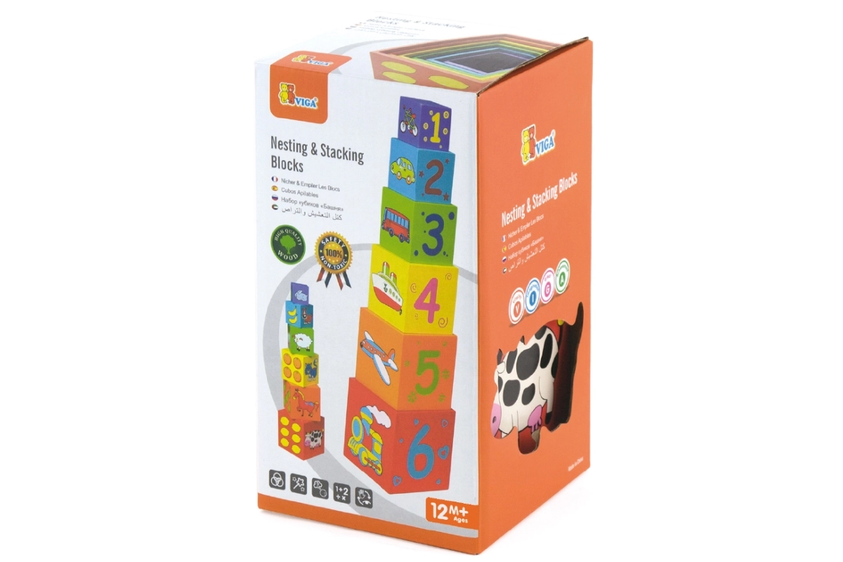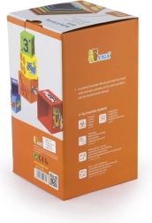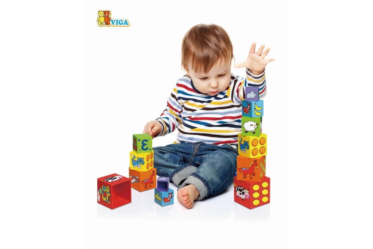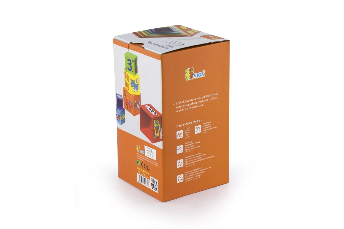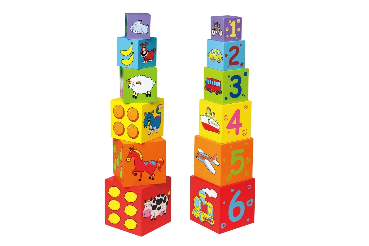 Cada bloque está codificado por colores y decorado con imágenes: animales, números, frutas y transporte. Esta versatilidad aporta muchas posibilidades de descubrimiento y aprendizaje.