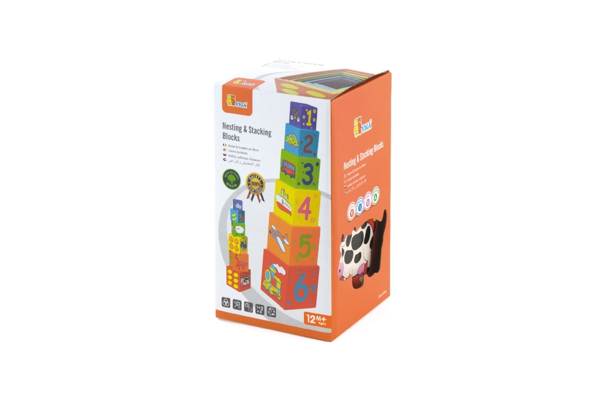Diseñados para niños a partir de 12 meses. Las dimensiones del bloque más grande son 11 x 11 cm, ideales para manos pequeñas.