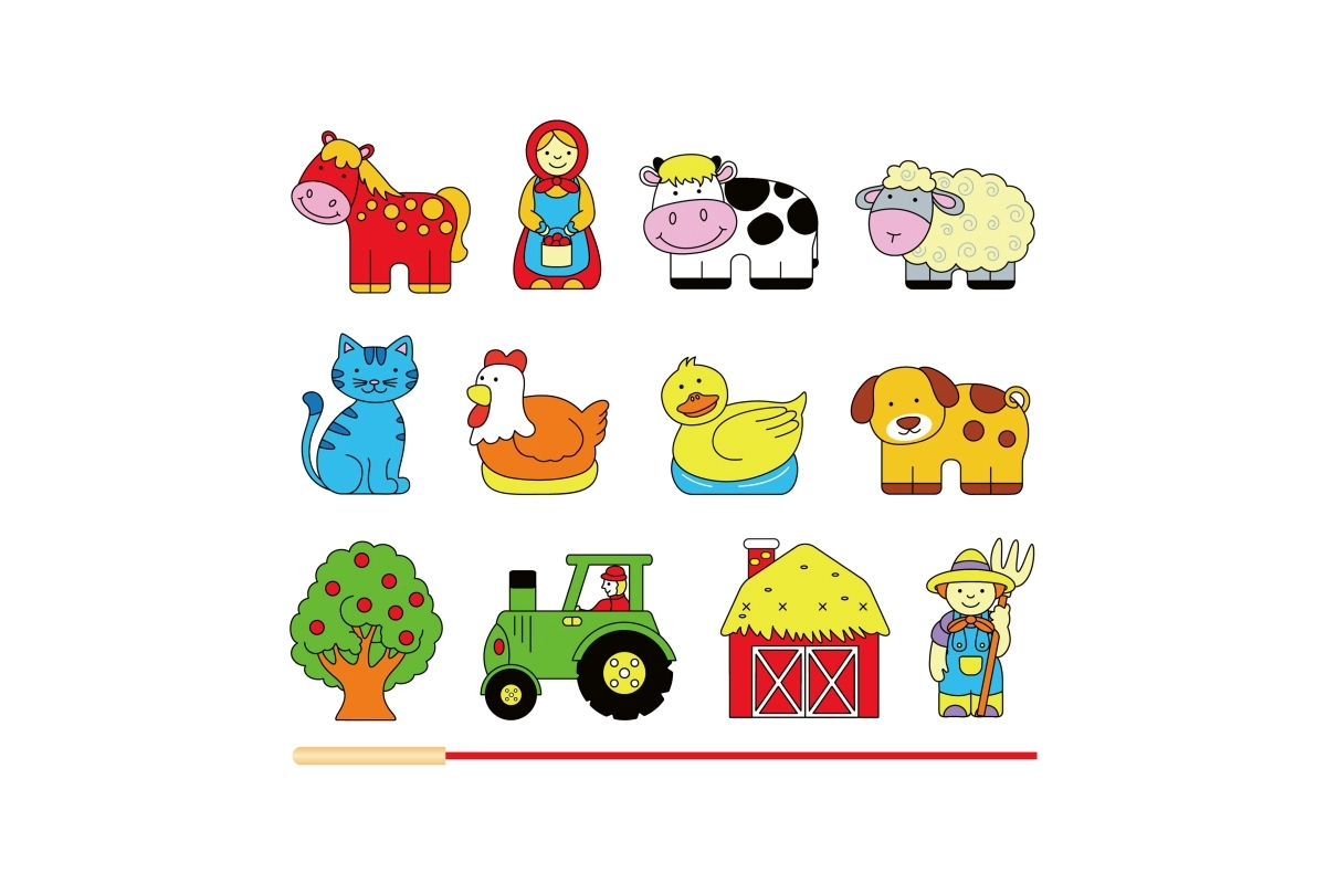 La diversión va de la mano con el aprendizaje, ya que el niño juega y descubre de forma amena la vida en la granja y los animales que viven en ella. Todas las piezas están hechas de madera lacada y pintadas con colores no tóxicos, que garantizan un juego seguro y alegre.