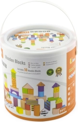 Este versátil set de bloques de madera ofrece a los niños infinitas posibilidades para construir torres, puentes y casitas. Las piezas son agradables al tacto, tienen bordes suaves y están pintadas con colores para un juego atractivo y seguro. El práctico cubo con asa facilita el almacenamiento y el transporte.