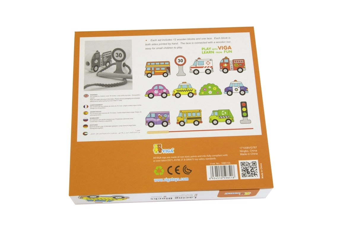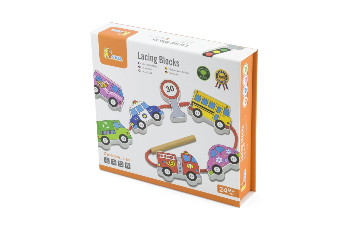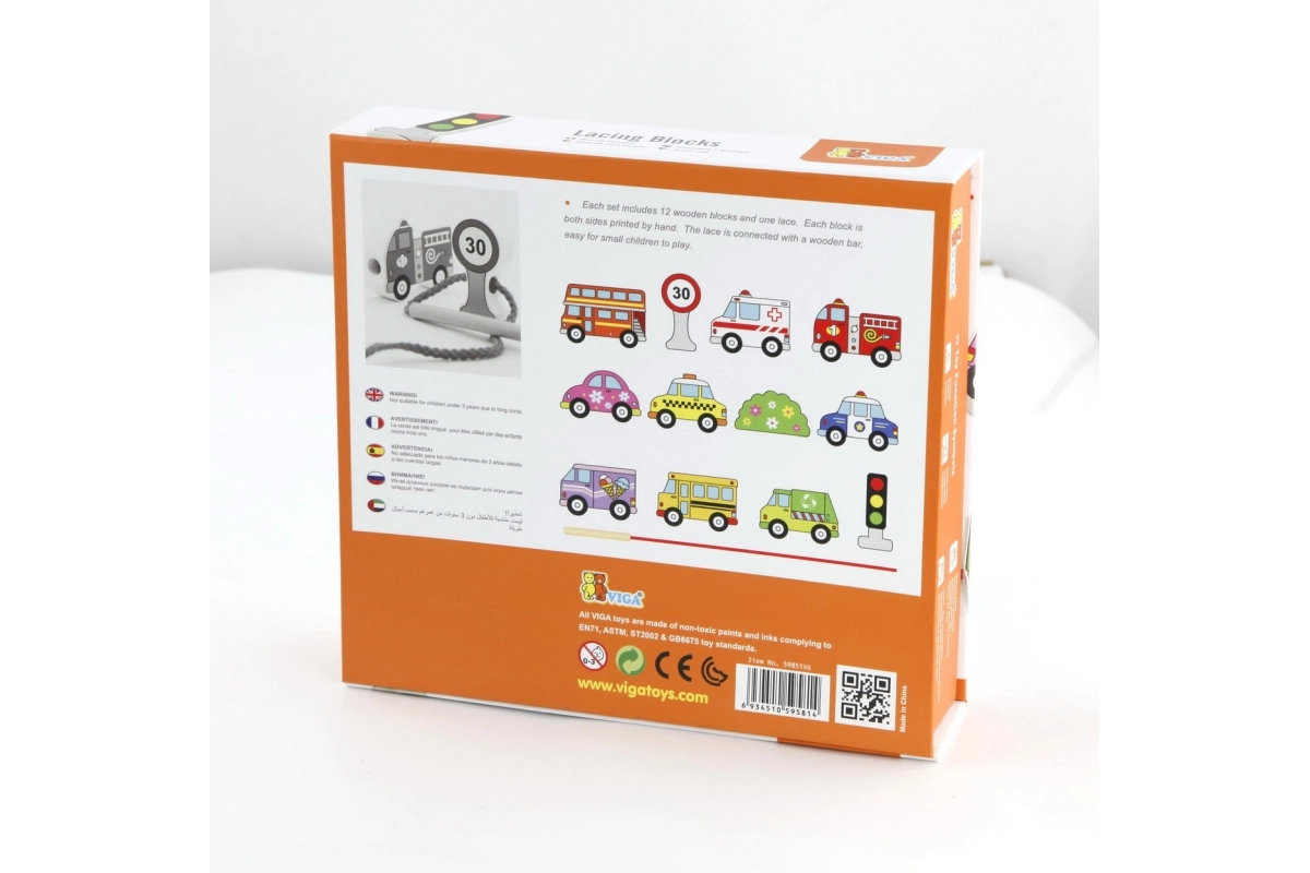 Este juego de ensartar de vehículos de madera de alta calidad brinda a los niños la alegría de aprender jugando. Incluye 12 piezas pintadas por ambos lados con coches, autobús, ambulancia, camión de bomberos y señales de tráfico, además de un cordón resistente con varilla para enhebrar fácilmente. Los niños pueden inventar sus propias historias sobre el tráfico en la ciudad, los viajes y la seguridad vial.