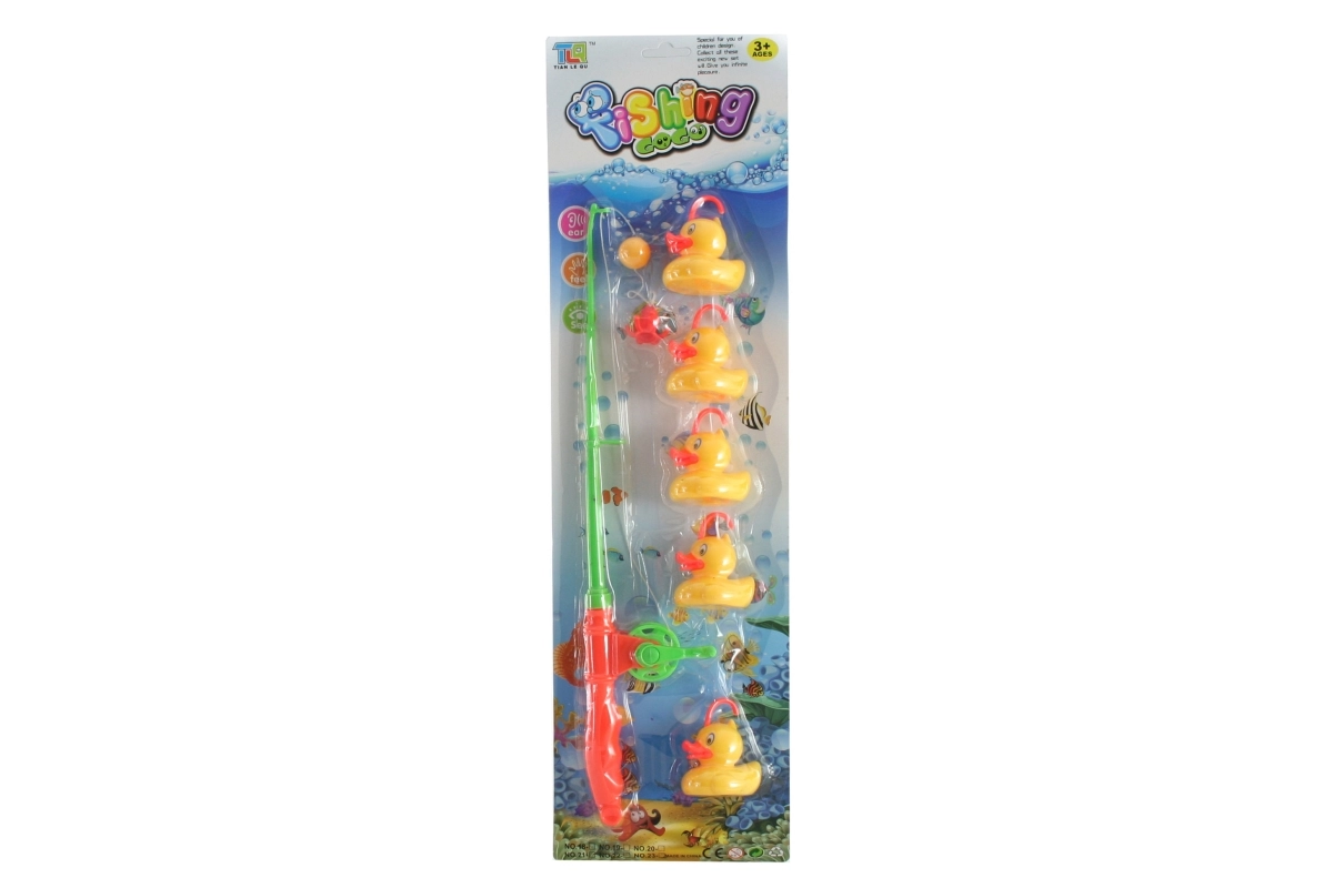 - 1× caña de plástico con carrete, 5× patito con ganchos