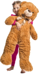 El osito tiene una longitud total de aproximadamente 90 cm (aprox. 90 × 40 × 20 cm) y en posición sentada mide unos 55 cm. Gracias a su fabricación de calidad, mantiene la forma y se convertirá en un compañero favorito para jugar y relajarse a diario.