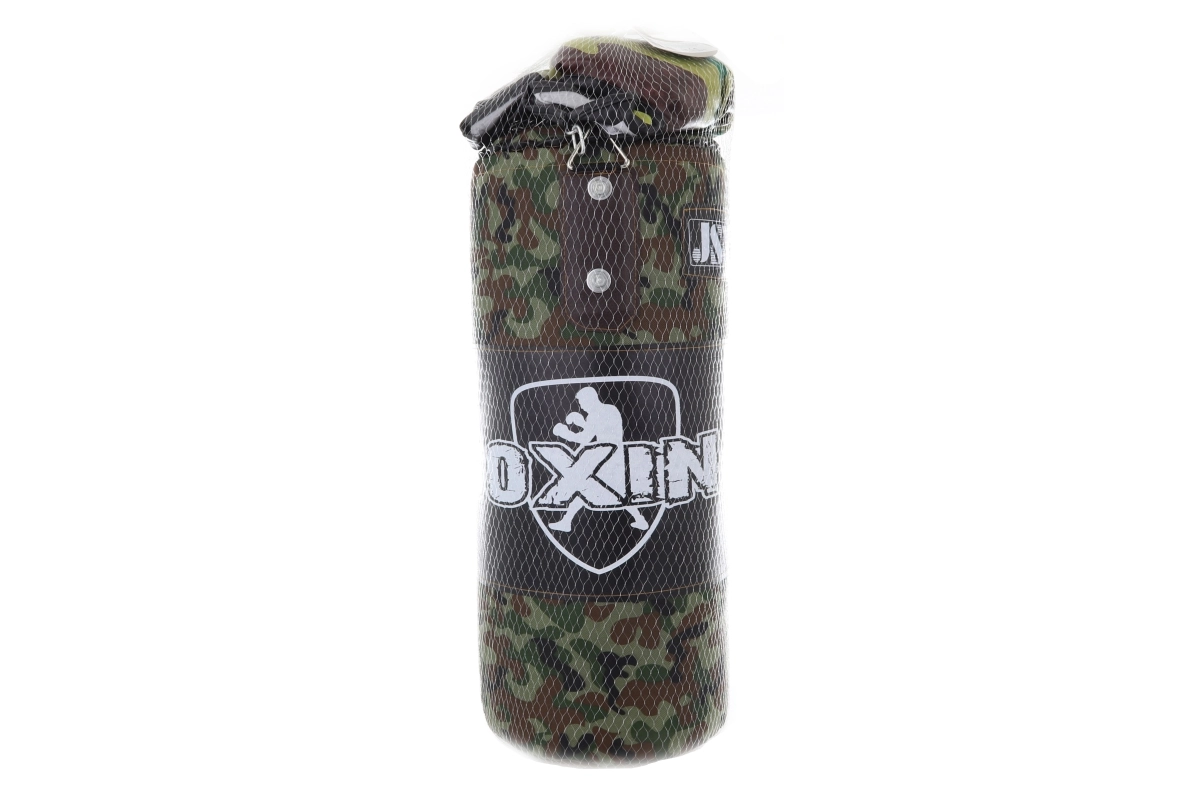 El set viene en una práctica malla, por lo que se transporta y guarda fácilmente. Las dimensiones del saco son aproximadamente 55 × 28 × 20 cm y los guantes tienen una longitud de aprox. 21 cm.