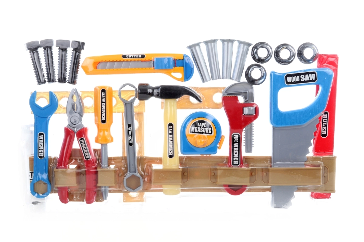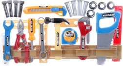 Descubre un set de herramientas de plástico para pequeños manitas, divertido y seguro, que desarrolla la motricidad fina, la creatividad y la imaginación. En un práctico paquete encontrarás todo lo necesario para jugar a reparar: sierra, alicates, martillo, llave grifa, destornillador, llave fija, cúter y un cinturón para organizar las herramientas. Ideal para niños a partir de 3 años.