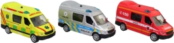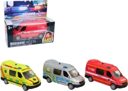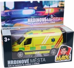 Descubre la diversión llena de acción con la serie de cochecitos Héroes de la ciudad de la línea City Collection. El coche de rescate con mecanismo de retroceso ofrece un juego realista gracias a los efectos luminosos y sonoros. Hay 3 tipos disponibles: ambulancia, policía y bomberos. Funciona con 2 pilas LR41.