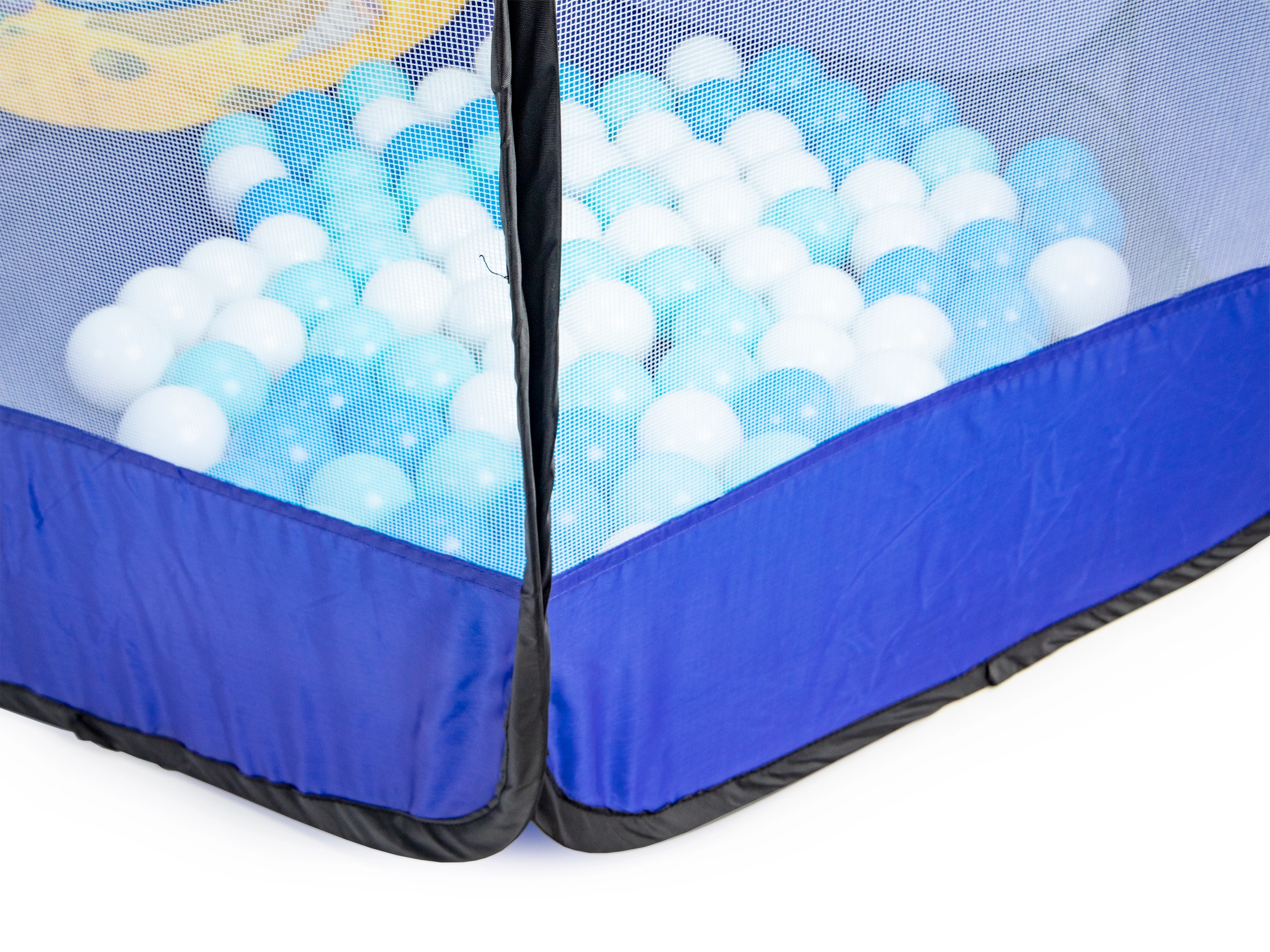 El estampado colorido con temática oceánica estimula la imaginación y las 100 pelotas de plástico (Ø 6 cm) proporcionan horas de diversión. El suelo reforzado aumenta la comodidad y la resistencia al jugar en casa o en el jardín.