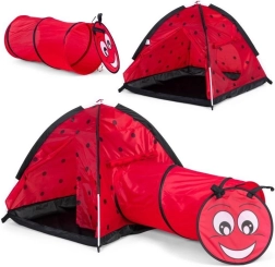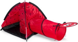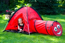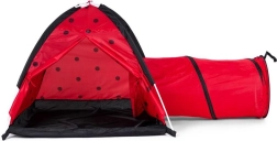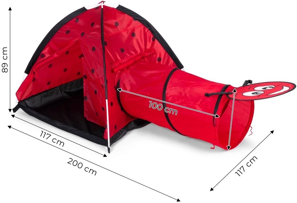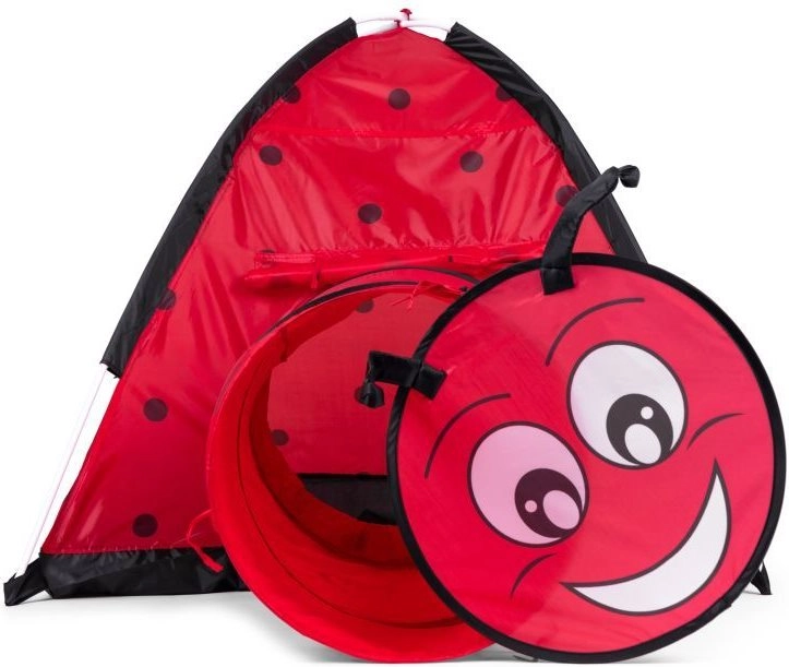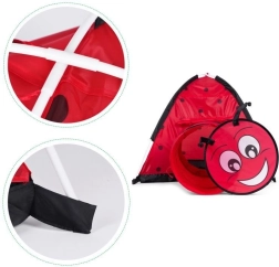 Convierte una habitación o el jardín en un lugar lleno de aventuras. La tienda infantil con motivo de mariquita invita a los niños a explorar y a jugar de forma creativa. La estructura tipo iglú con una entrada y conexión para túnel fomenta el movimiento, el gateo y el escondite, desarrollando la motricidad y la imaginación. Gracias al armazón ligero, la tienda se transporta fácilmente para que los niños la disfruten en cualquier lugar.