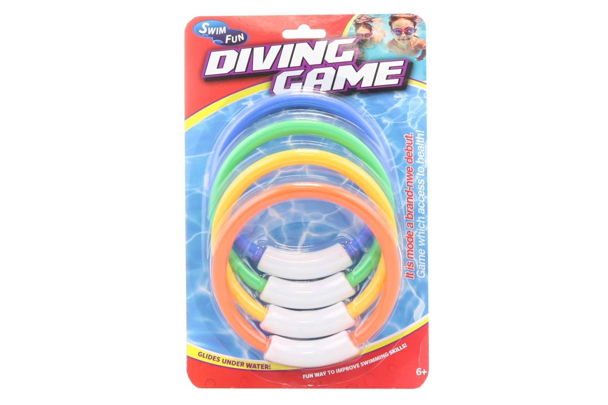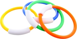 Convierte la natación en diversión y entrenamiento con este juego de 4 aros de buceo de colores. Al arrojarlos al agua, se hundEN automáticamente hasta el fondo y en el fondo se mantienen en posición vertical para facilitar su recogida. Ideales para el entrenamiento de natación y buceo y para jugar en la piscina de casa bajo la supervisión de un adulto.