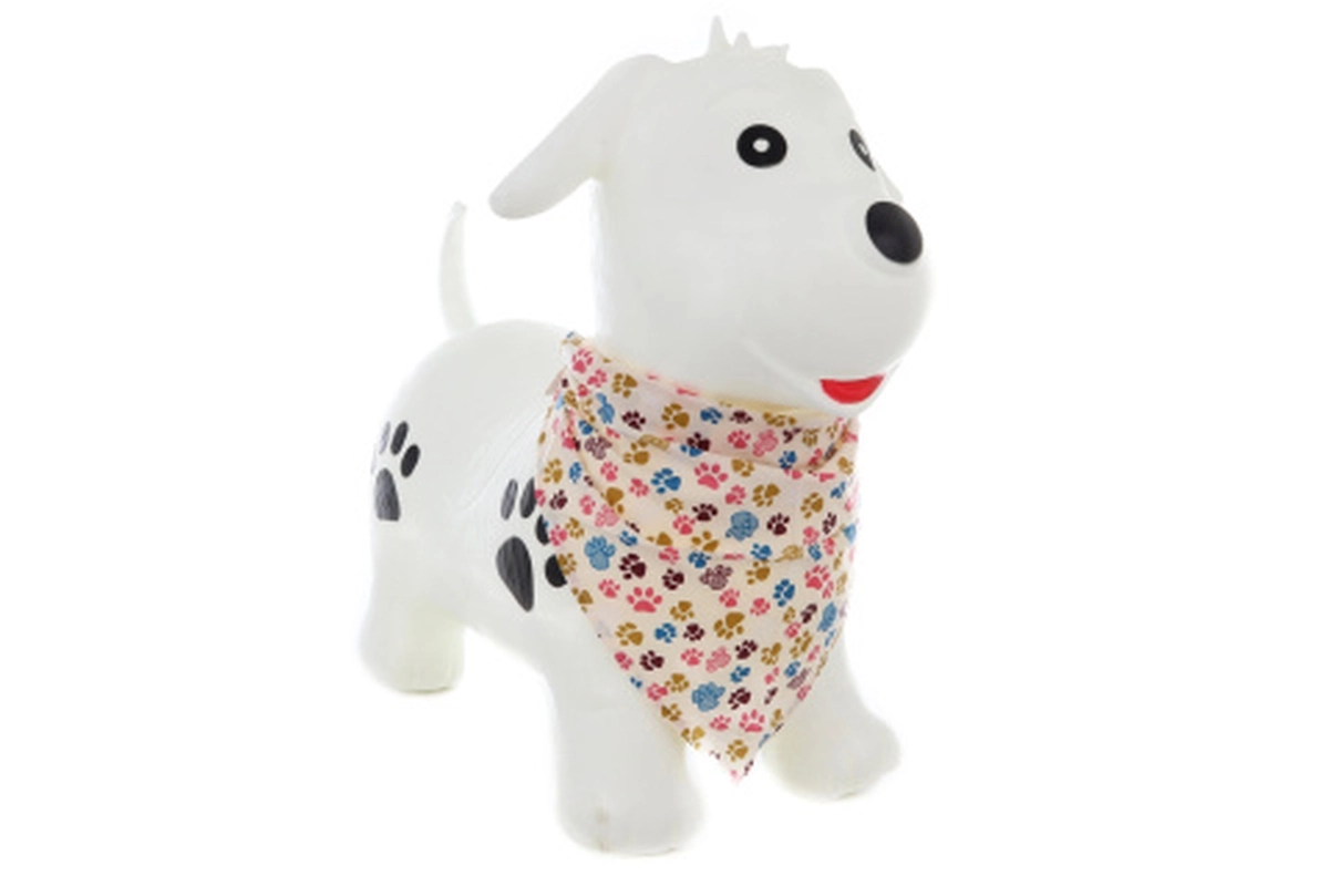 Adorable saltador de goma con forma de perrito que ofrece a los niños mucha diversión y movimiento. Gracias a su estructura estable, capacidad de carga máxima de 50 kg y altura del asiento de 27 cm, es ideal para las primeras aventuras de salto. Incluye una bomba práctica para inflarlo rápidamente.
