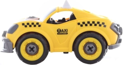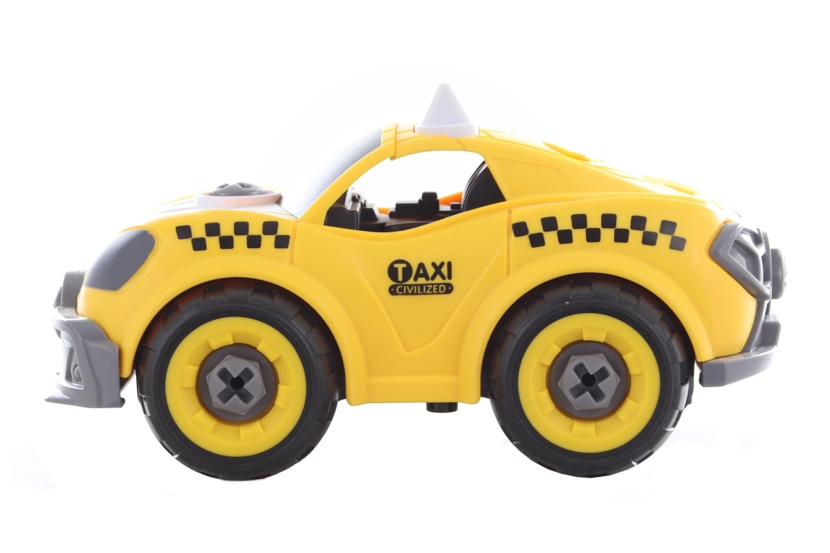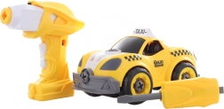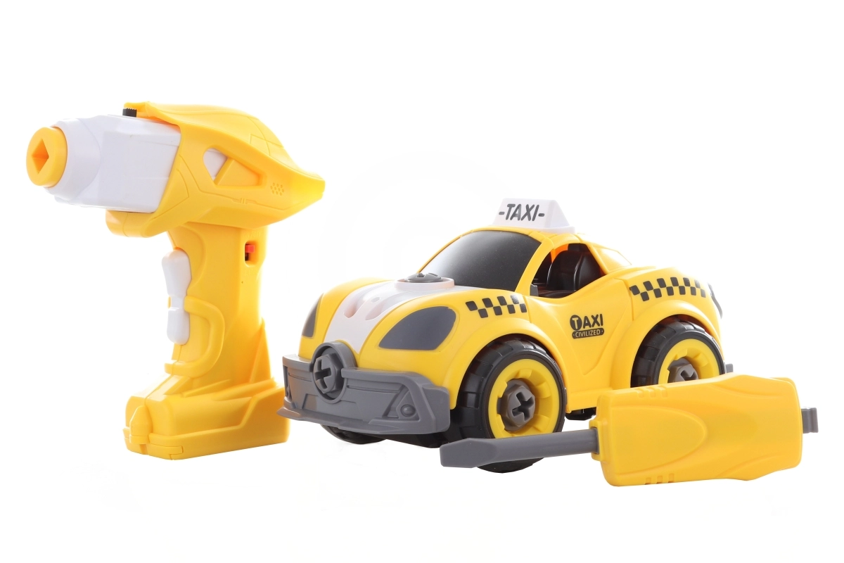 ¡Construye, atornilla y a rodar! Este set creativo combina un modelo atornillable de taxi amarillo con la posibilidad de convertirlo en un coche con control remoto. Los niños primero montan el coche usando el destornillador o el taladro y luego sacan el motor del taladro, lo insertan en el coche y disfrutan de un control sencillo hacia adelante y hacia atrás.