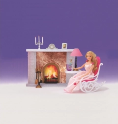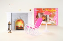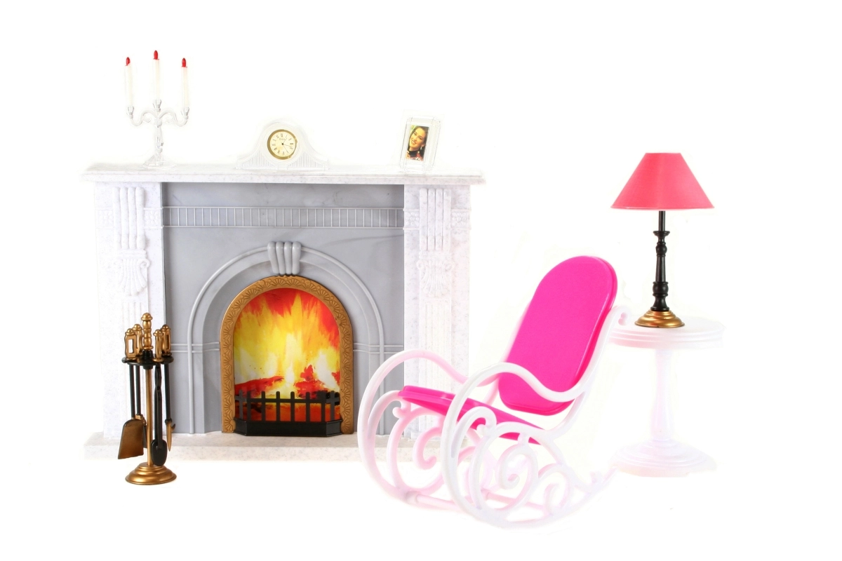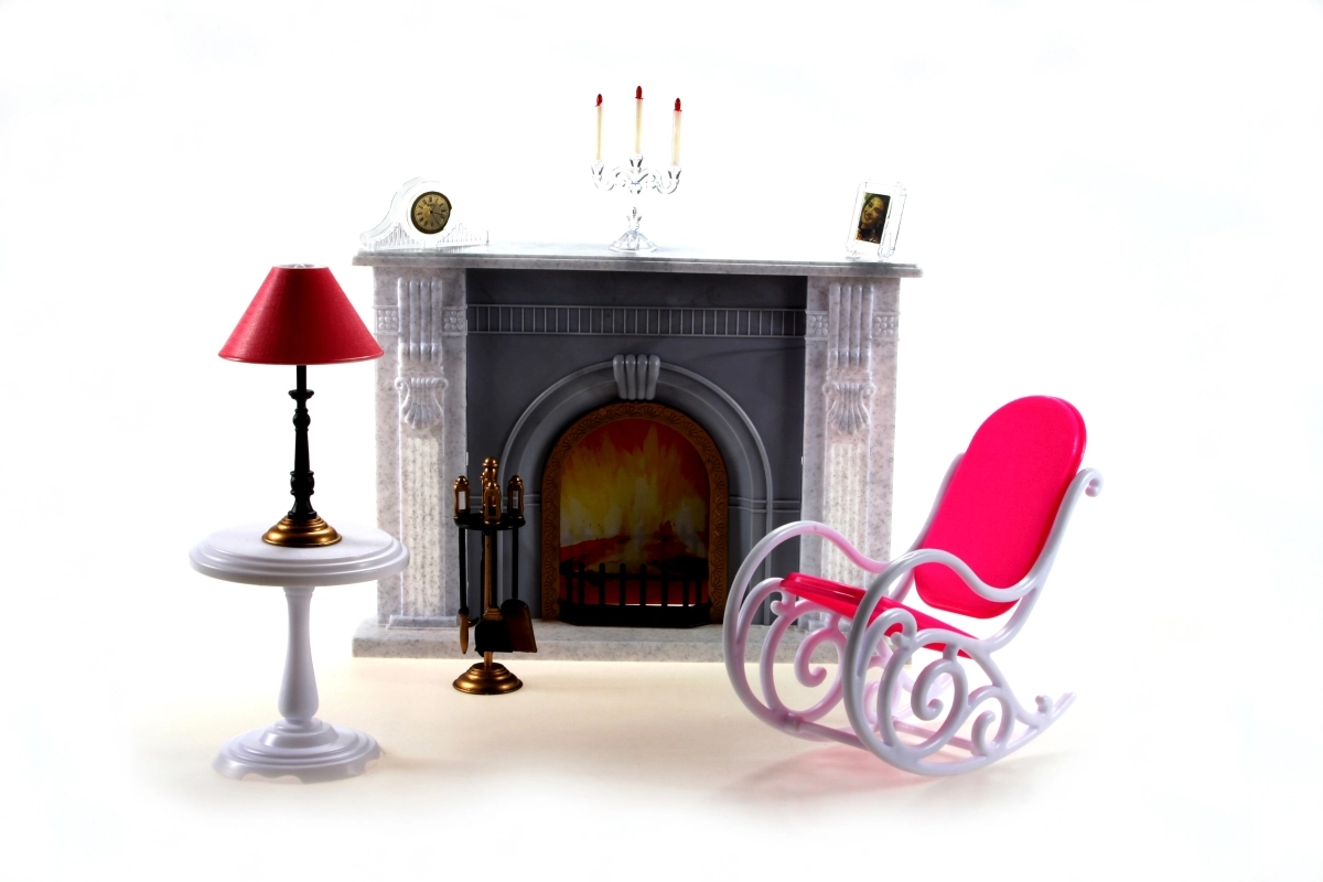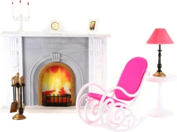 El paquete incluye un sillón mecedor para que las muñecas se sienten cómodamente, una mesita con lámpara funcional (decorativa) y un soporte con utensilios de chimenea. No faltan decoraciones como un candelabro, un cuadro y un reloj para crear la atmósfera perfecta. Gracias a su fabricación en plástico, el set es ligero, fácil de mantener y seguro para los niños.