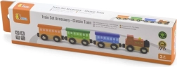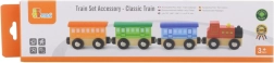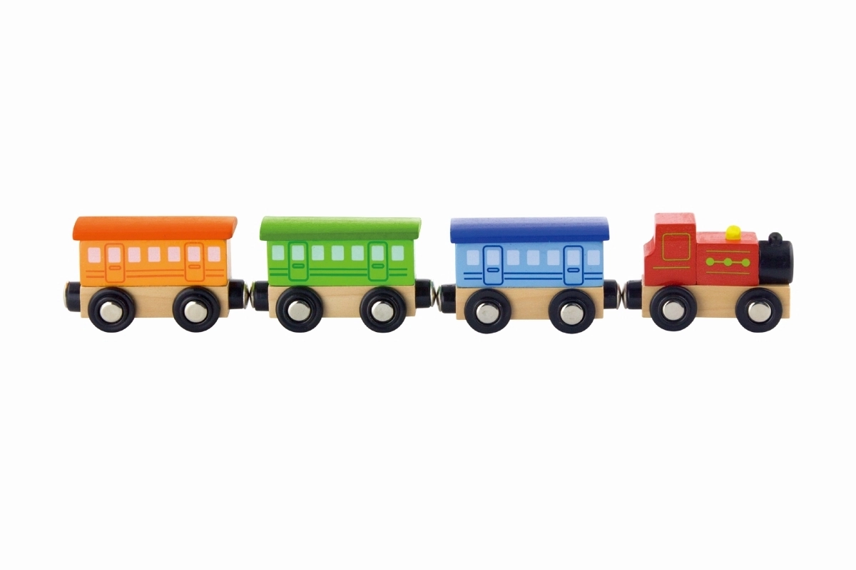El juego de madera Tren clásico incluye 4 piezas unidas por imanes. Este juguete fue diseñado por el reconocido fabricante de juguetes de madera, Viga Toys. El set puede usarse como juguete independiente o como complemento de otras vías de tren, bloques de construcción y sets.