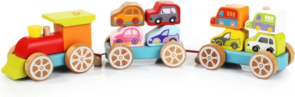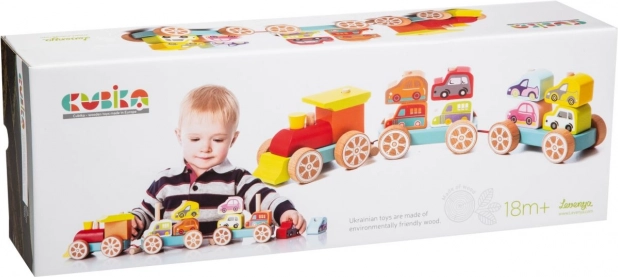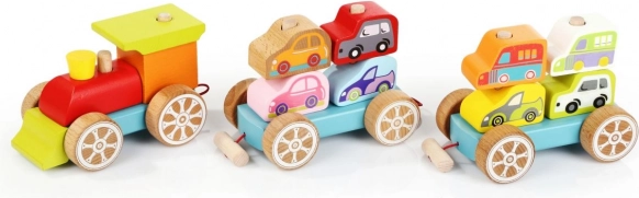 Este colorido rompecabezas de madera incluye 14 piezas, con las que los niños pueden montar un tren con dos vagones y ocho cochecitos. No solo juegan con las piezas individuales, sino que también desarrollan sus capacidades sensomotoras, el pensamiento lógico y la creatividad.