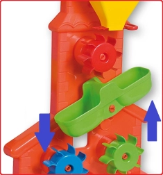 Observa cómo giran las ruedas de colores y cómo el canal divide el flujo. El juego estimula la percepción sensorial y el pensamiento lógico.