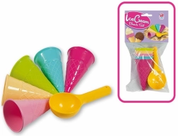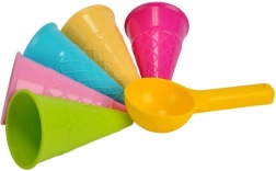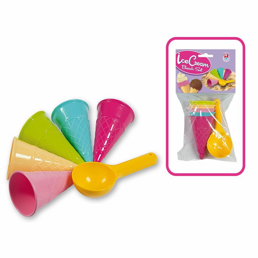 Androni moldes para arena Helado son ideales para los pequeños amantes de la arena y el helado. Este juego de seis piezas ofrece cinco cucuruchos y una cuchara para bolas, lo que permite a los niños crear sus propias delicias de helado de arena.