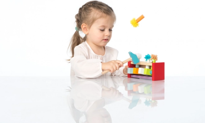 Martillar es una actividad ideal para entrenar la coordinación mano-ojo y fortalecer el agarre. El juego fomenta la concentración y la autonomía en un entorno seguro y divertido.