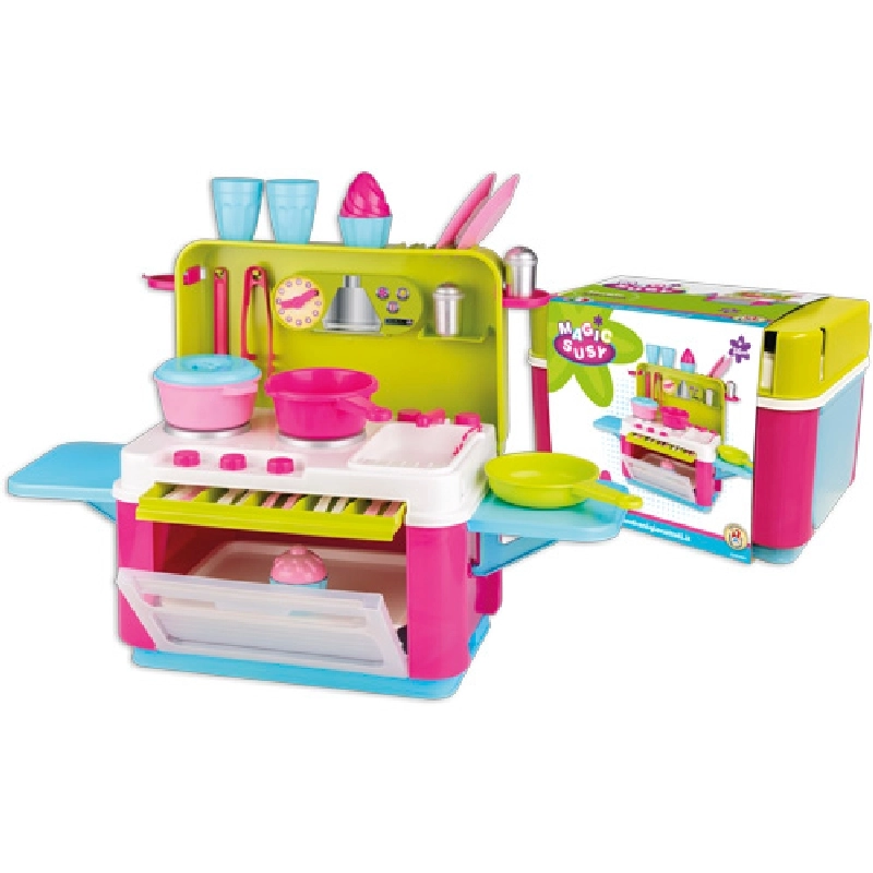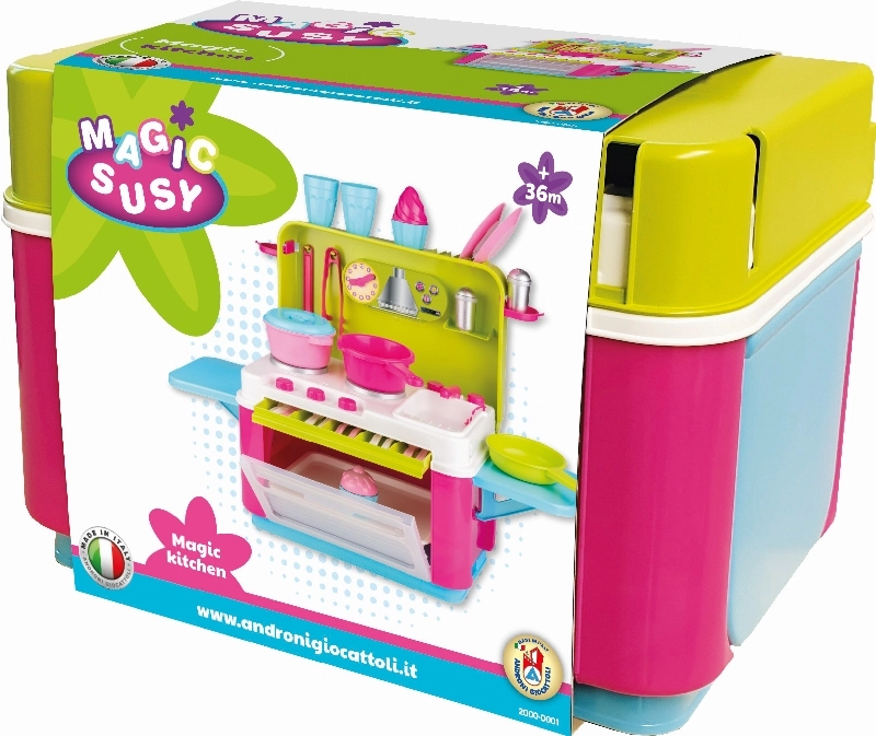 La compacta cocina de viaje de la marca italiana ANDRONI encantará a los pequeños chefs a partir de 3 años. Ofrece 25 accesorios, acabado italiano de calidad y materiales plásticos resistentes y a la vez flexibles, adecuados incluso para juego intensivo en guarderías.