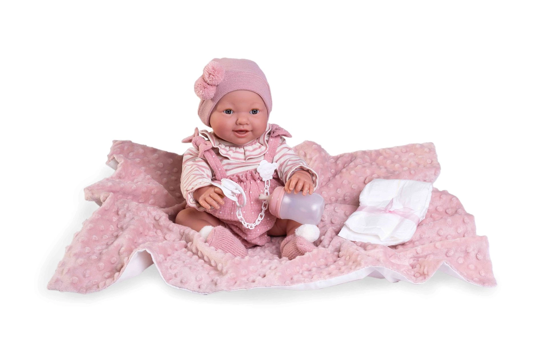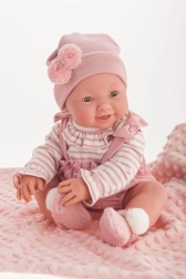 La marca ANTONIO JUAN apuesta por la sostenibilidad: la colección incluye ropa de algodón orgánico procedente de fibras recolectadas a mano y cultivadas de forma ecológica, sin tratamientos químicos. La muñeca es ideal para el juego y el desarrollo de la empatía, la motricidad fina y la imaginación.
