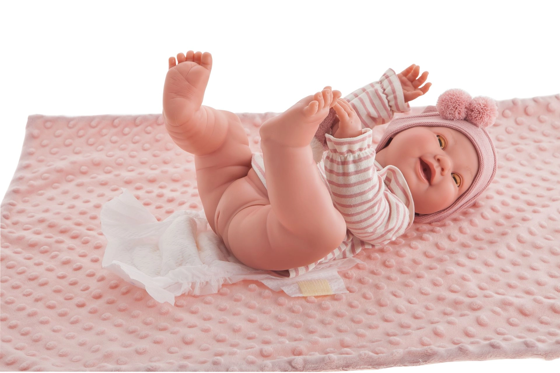 Descubre la muñeca bebé realista MIA, que gracias a su función de parpadeo y la posibilidad de hacer pipí ofrece a los niños una experiencia de cuidado auténtica. El cuerpo totalmente de vinilo, de vinilo suavizado, es suave al tacto y sorprende con detalles fieles como pliegues y proporciones realistas, con representación del sexo.